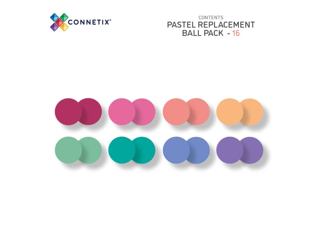 Разширете своята магнитна конструкторска система Connetix с комплект от 16 дървени топчета в нежни пастелни цветове, създадени не само за топкови писти Connetix Tiles, но и за други творчески приложения. Топчетата предлагат широки възможности за игра и безкрайно забавление пълно с експериментиране.