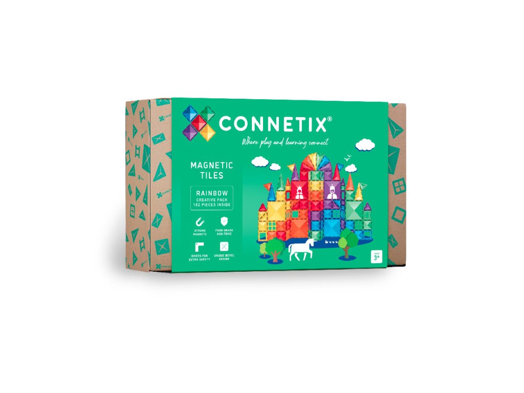 Connetix е идеален за деца от 3 години и е съвместим с други водещи марки магнитни конструктори, което увеличава възможностите за още повече забавление и креативна игра. Комплектът Connetix Tiles подпомага работа в екип, координация и креативно строителство, което дава на родителите чудесна възможност да прекарват време с децата си.