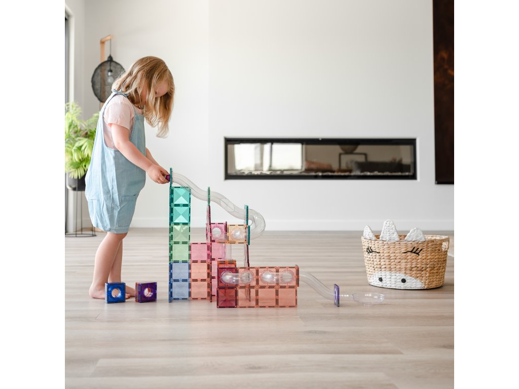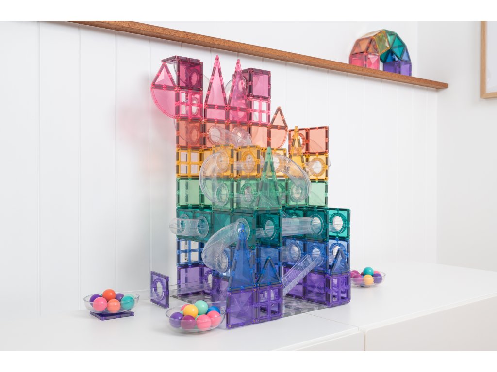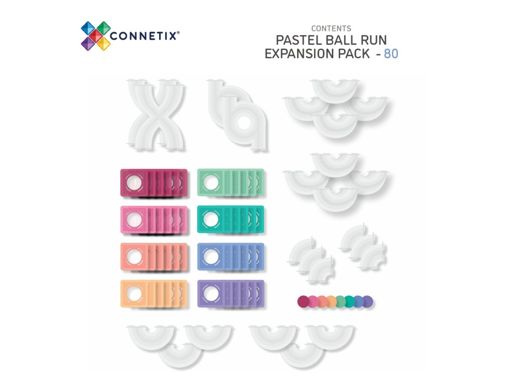 Този комплект е идеално допълнение за тези, които вече притежават основния комплект Топчеста писта Пастелна (106 части) или Топчеста писта Дъга (92 части), но също така предлага много забавление и възможности за креативно конструиране и сам по себе си. Разширете детското въображение с този чудесен комплект пастелни магнити за топчеста писта Connetix плочки!