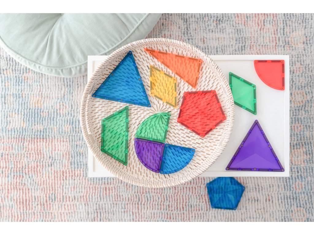Открийте ново измерение в строителството с магнитния конструктор Connetix Tiles в уникален комплект с нестандартни форми! Петоъгълници, трапецовидни, четвърт кръг, диаманти и други геометрични фигури в ярки цветове отварят на децата съвсем нови възможности за творчество.