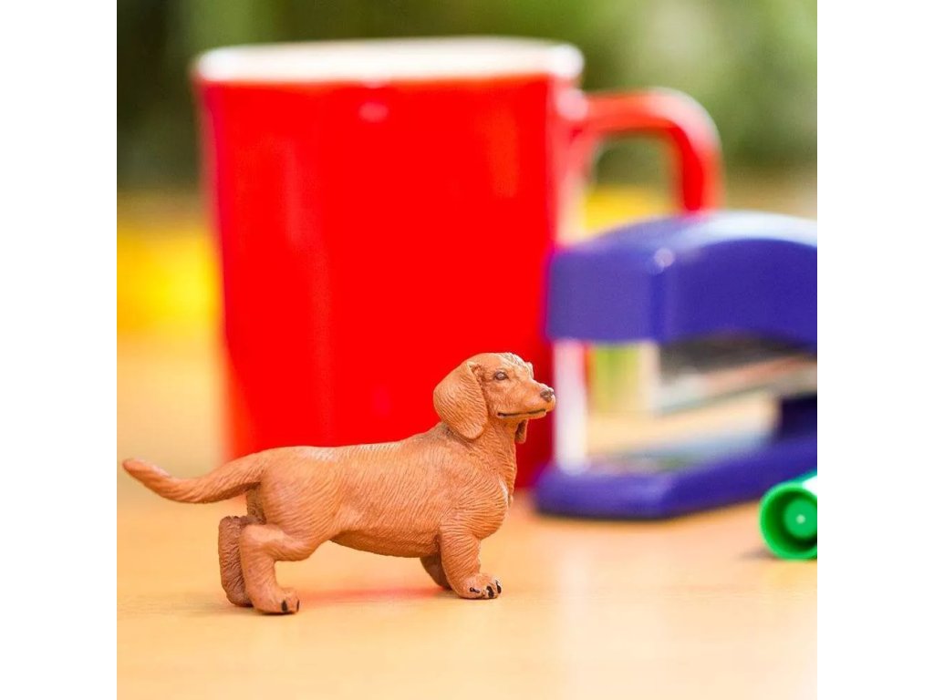 Реалистична фигурка на дакел, улавяща чертите на това смело и приятелско куче. Моделът е детайлно изработен и подходящ за колекциониране и игра.