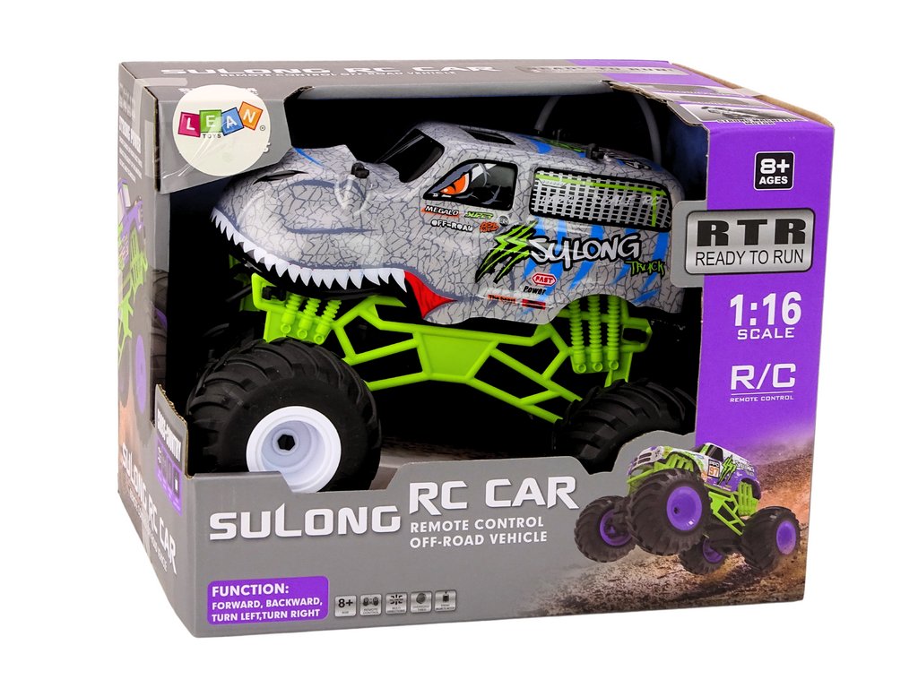 Далечно управляван автомобил с форма на динозавър в сив цвят, в мащаб 1:16, е невероятна играчка, която пренася децата в праисторическата епоха. Изработен с акцент върху най-високо качество и издръжливост, той разполага с меки гумени гуми, осигуряващи плавно движение дори по неравен терен.