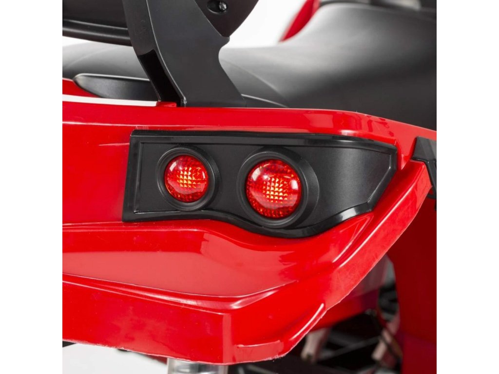 Детска акумулаторна атв червена е отличен начин да запознаете вашето дете с вълнуващия свят на моторните превозни средства. Електрическата детска ATV осигурява много забавление както при семейни разходки, така и във времето на двора. Детето ще се научи да управлява и ще развие моторните си умения. Атвето може да се движи напред и назад и разполага с възможност за ускорение. Колелата са изработени от мека EVA пяна. Седалката е изключително удобна и ергономично оформена, което прави всеки път на детето зад волана приятен. Освен това, атв-то е оборудвано с LED осветление. Продуктът е сертифициран със знак за безопасност CE и е подходящ за деца от 3 години нагоре.