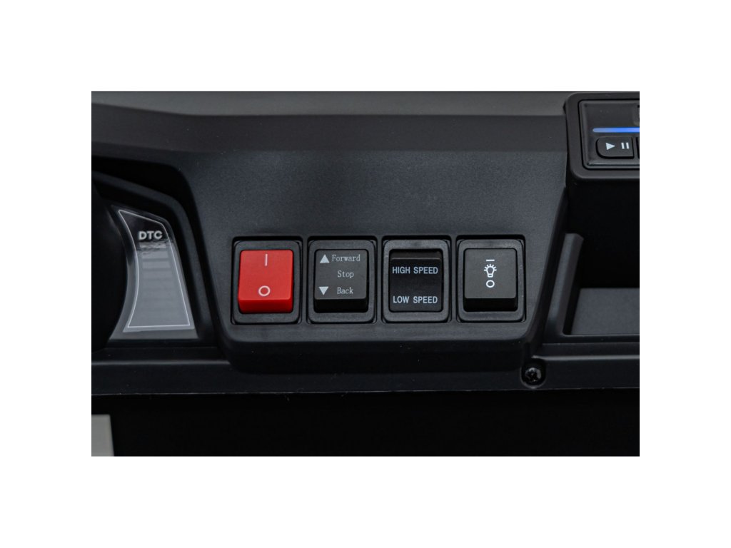 Мултимедийният панел включва FM радио, MP3 плейър, Bluetooth, USB вход и бутони с реалистични звуци и клаксон. Превозното средство е оборудвано с LED осветление отпред и отзад, с отделен ключ за включване и индикатор за нивото на батерията.