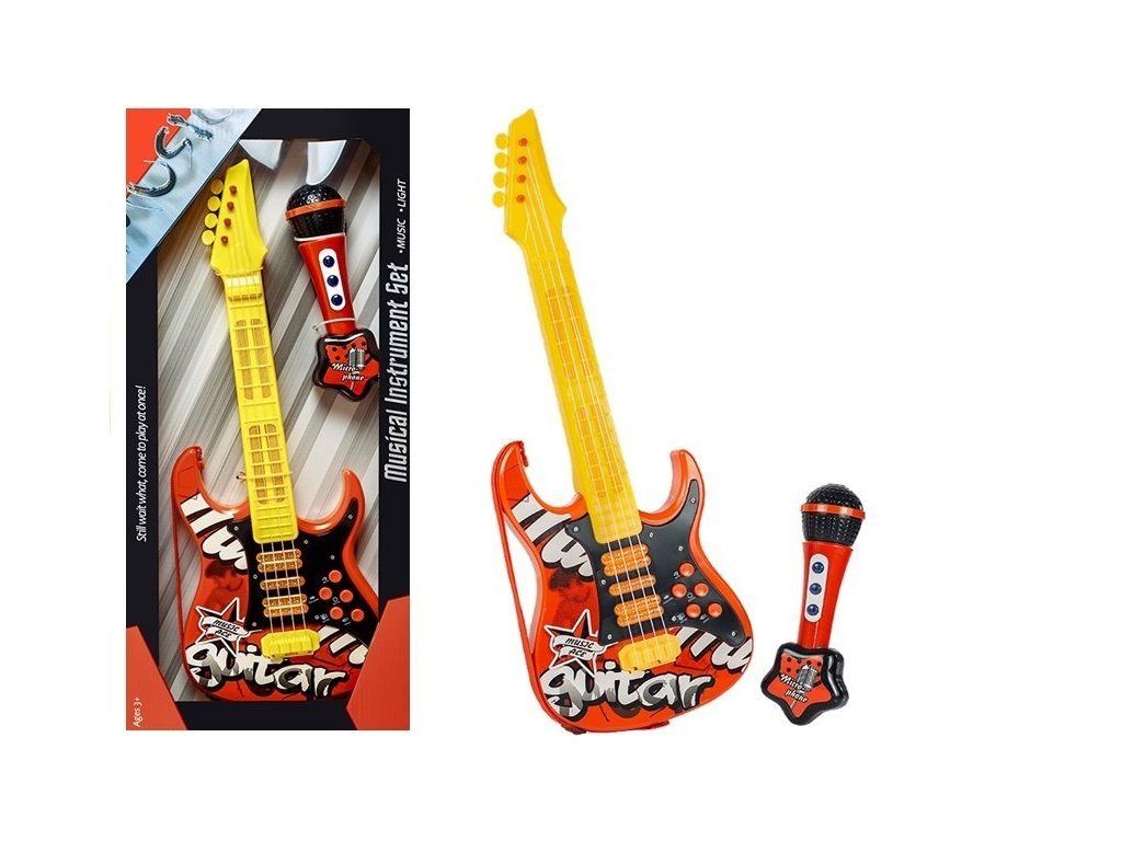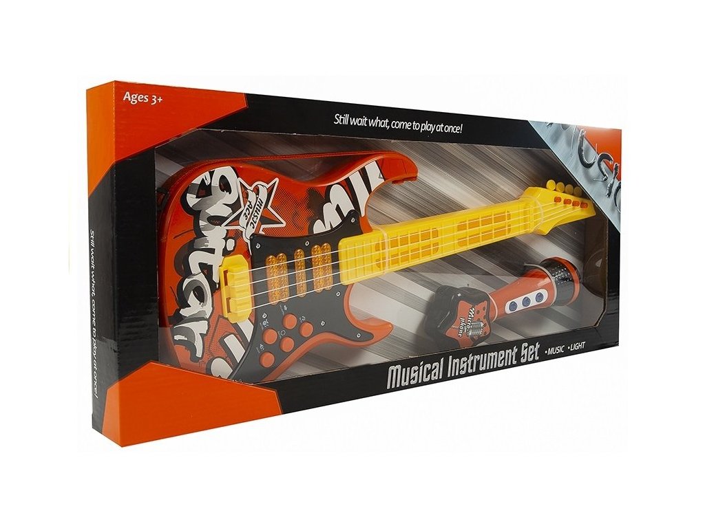 Важно: Снимката е илюстративна. Китарата има син врат, останалите елементи съответстват на изображението.