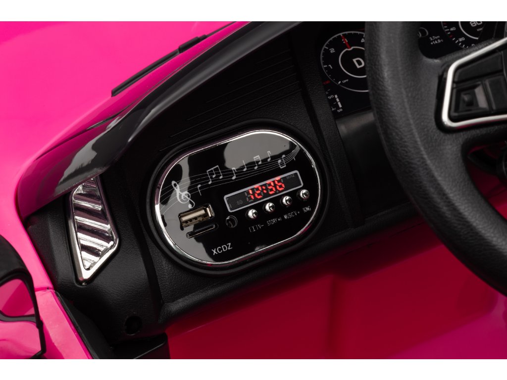 Интериорът е снабден с аудио панел с входове за MP3, AUX, USB и предварително записани мелодии. Воланът има бутони със звукови ефекти.