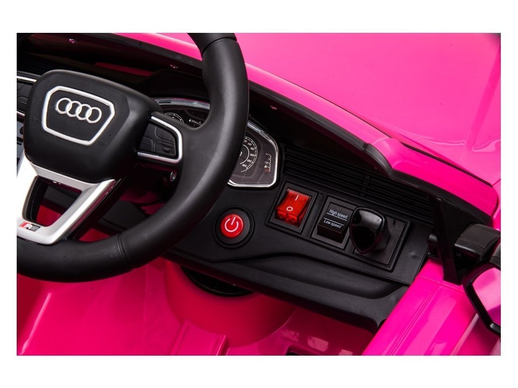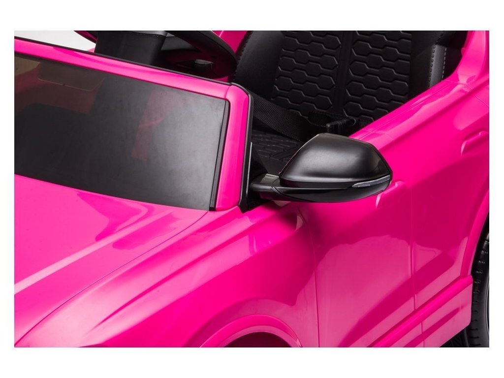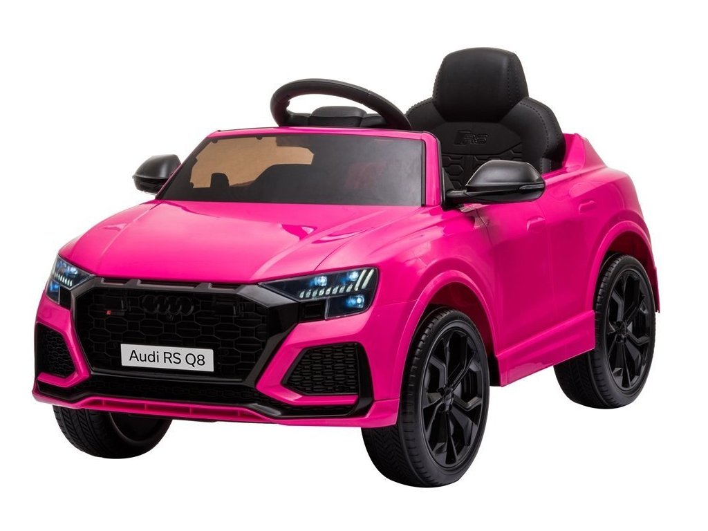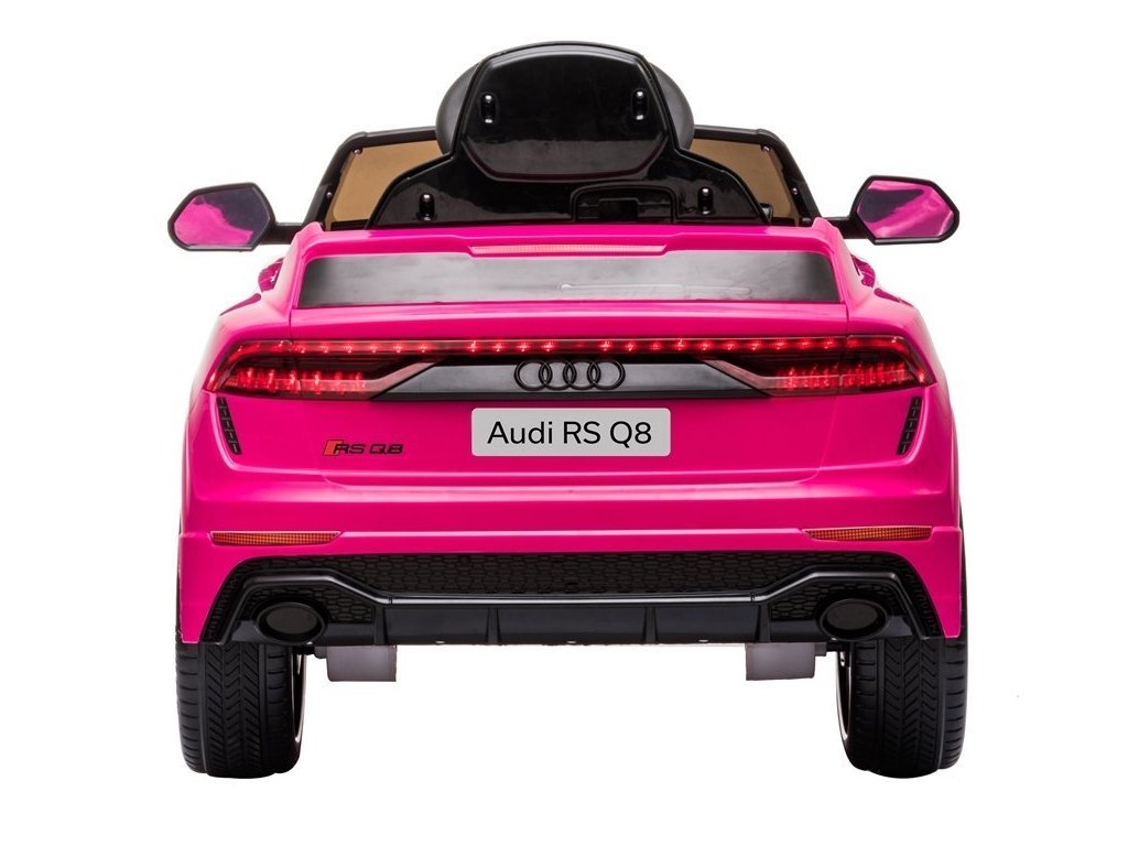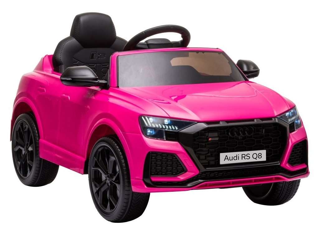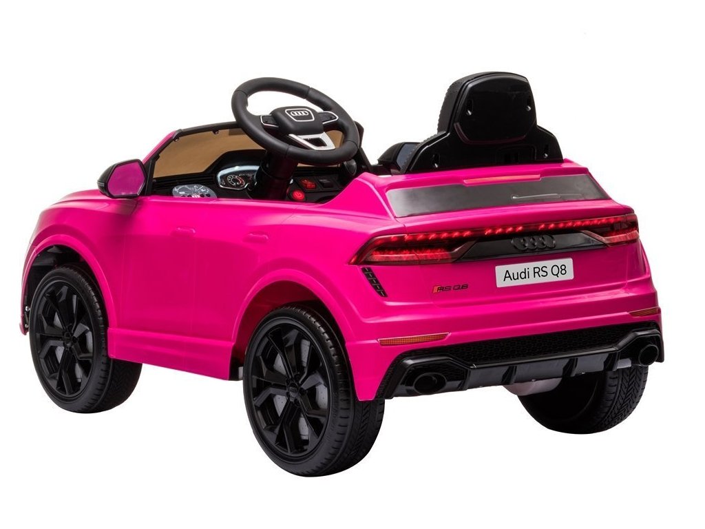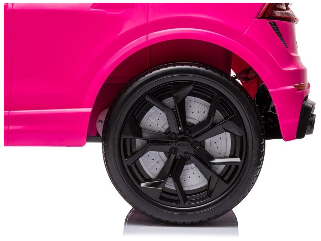 Детска акумулаторна кола Audi RS Q8 розова с официална лицензия на Audi, която със сигурност ще впечатли всяко дете и любител на висококачествени автомобили. Моделът е оборудван със специални пянообразни Eva гуми, които са безшумни и подходящи за различни типове терени. Детето сяда удобно на мека седалка от екологична кожа.