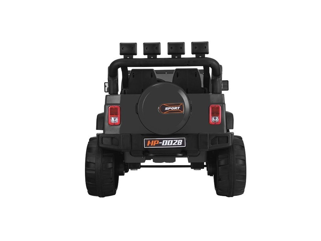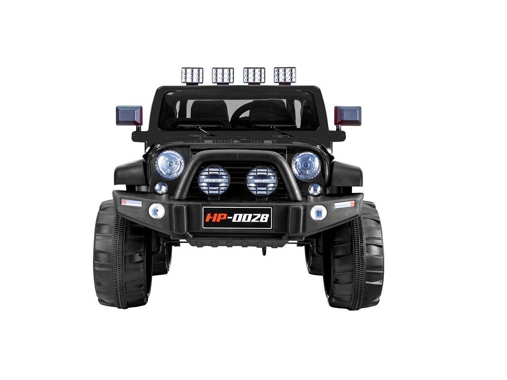 Детска акумулаторна кола Jeep HP012 е оборудвана с първокласни функции. Мекото двойно седало е изработено от черна еко кожа, което повишава удобството по време на каране. Седалката е снабдена със специален предпазен колан, който в комбинация с заключващите се врати увеличава нивото на безопасност и забавление. В кабината има осветление и табло с имитации на различни часовници и индикатори, както и музикален плейър с FM радио – позволява свързване на слушалки, SD карта или USB флаш памет. Този звуков панел със сигурност ще очарова всяко дете.