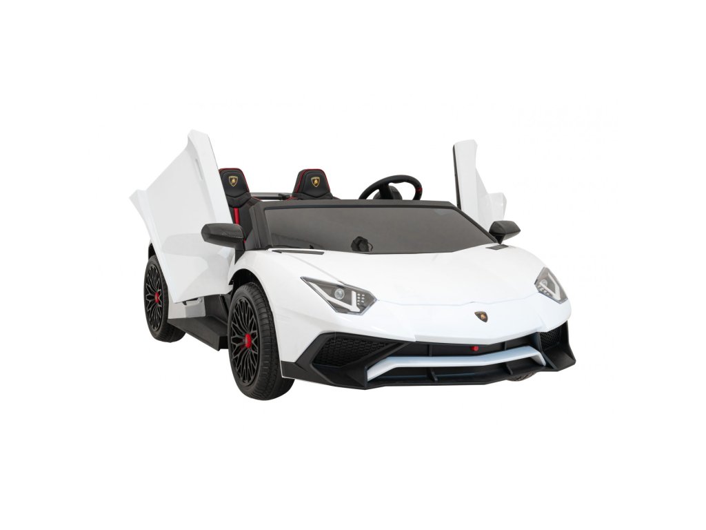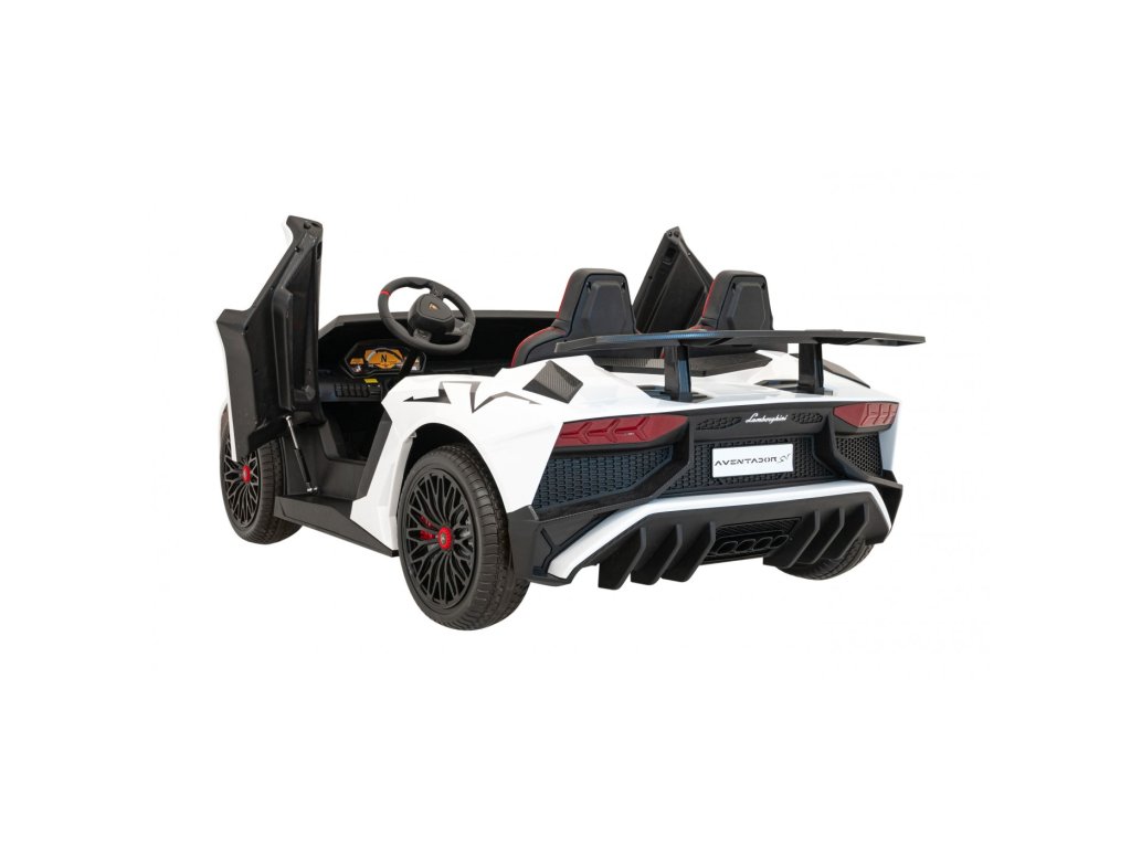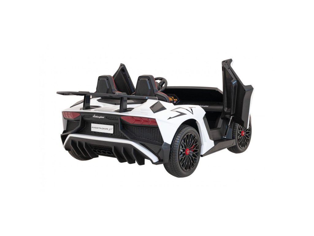 Детска акумулаторна кола Lamborghini Aventador SV бяла е миниатюрна реплика на фантастичния автомобил, притежава оригинален лиценз от производителя. Интериорът на колата също е вдъхновен от оригиналния модел в пълен размер. Това е съчетание от спортен стил, минимализъм и функционалност.