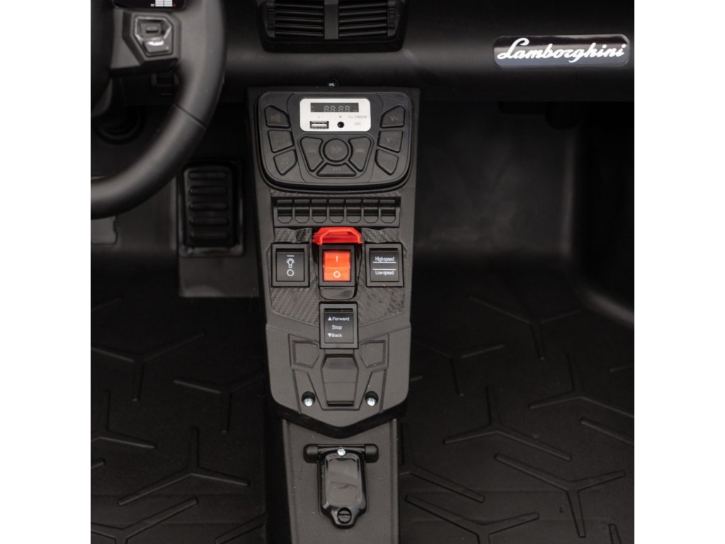 Черното седалкова е изработено от мека екологична кожа, което значително подобрява комфорта при каране, а завиващият волан е съобразен по размер и тегло с ръцете на малки деца за лесно управление и избягване на препятствия. На таблото има мултимедиен панел с USB порт, AUX вход и Bluetooth. Управлението на детската акумулаторна кола е изключително интуитивно и лесно - просто включете бутона, натиснете педала за газ и карайте внимателно. Може да използвате и втора опция – комплектът включва надеждно дистанционно управление на 2,4 GHz, което Ви позволява да контролирате колата.