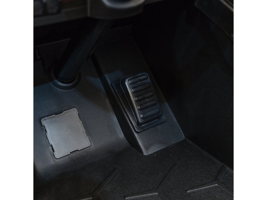 Черното седалково място е изработено от мека екологична кожа, което значително повишава комфорта по време на каране, докато завиващият волан е проектиран за ръцете на малки деца, за лесно управление и избягване на препятствия. На таблото има музикален панел с USB порт, AUX вход и Bluetooth връзка. Използването на акумулаторната кола е много интуитивно и лесно – просто включете ключа, натиснете педала за газ и карайте внимателно. Можете да използвате и втория вариант – комплектът включва надеждно дистанционно управление 2,4 GHz, което ви позволява да управлявате колата отбдалеч.