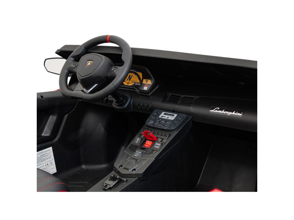 Детска акумулаторна кола Lamborghini Aventador SV червена е миниатюрно копие на фантастичния спортен автомобил и притежава оригинален лиценз от автомобилната компания. Интериорът на колата е вдъхновен от реалния модел в пълен размер. Това е съчетание на спортен стил, минимализъм и функционалност.