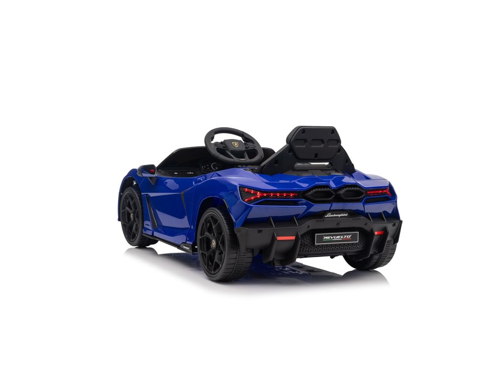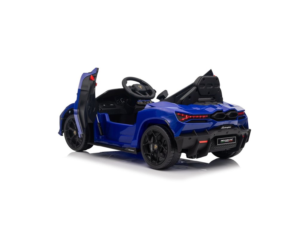 Детска акумулаторна кола Lamborghini Revuelto синя е миниатюрна версия на фантастичния автомобил, притежава оригинална лицензия от автомобилната компания. Интериорът на колата е вдъхновен от пълноразмерния модел. Този продукт съчетава спортен стил, минимализъм и функционалност.