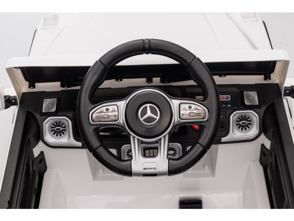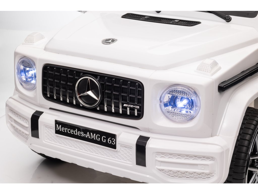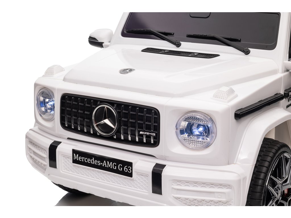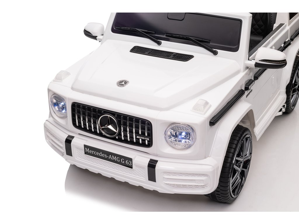 Детската акумулаторна кола Mercedes Benz G63 кабрио бяла е перфектният избор за малките любители на луксозните автомобили. С батерия с капацитет 12V 4,5Ah и дистанционно управление на 2.4 GHz, тази кола осигурява безопасност и пълен контрол при всяко шофиране.
