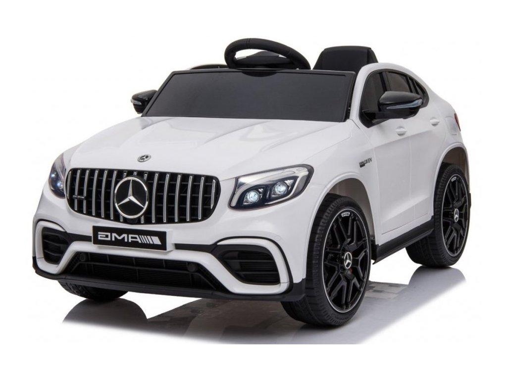 Детска акумулаторна кола Mercedes Benz GLC 63S 4x4 бяла пристига с четири мощни електрически мотора по 45W, които позволяват изкачване на не особено стръмни наклони и справяне с неравен терен. Детето сяда на удобно оформеното седалка от еко кожа и осветява пътя си с предни LED светлини. Карането се допълва от звукови ефекти, а също така има възможност за свързване на USB и SD карти или MP3 плейър.