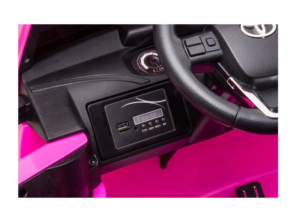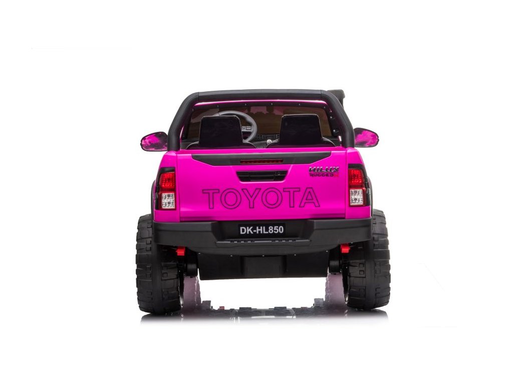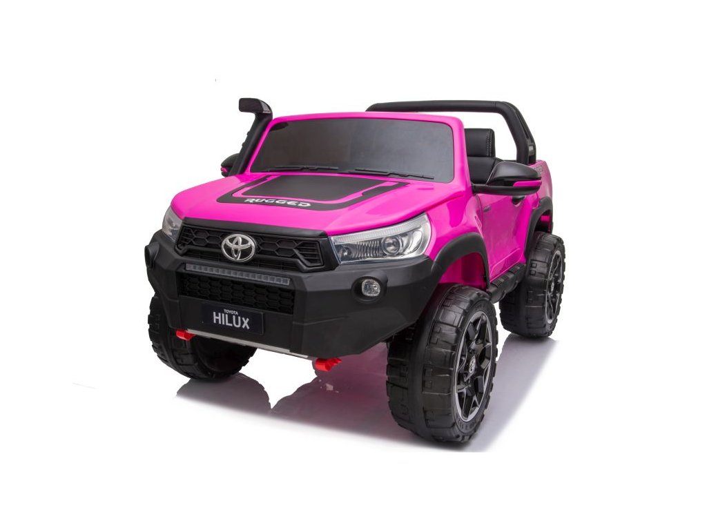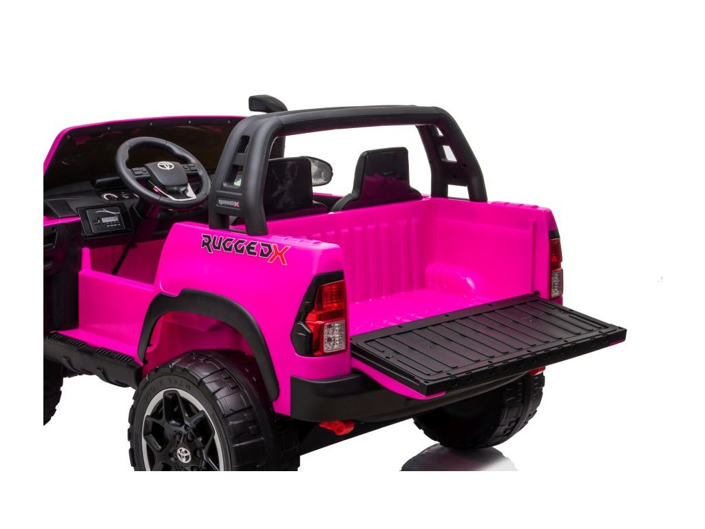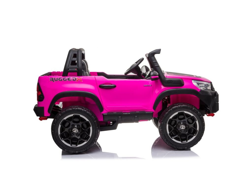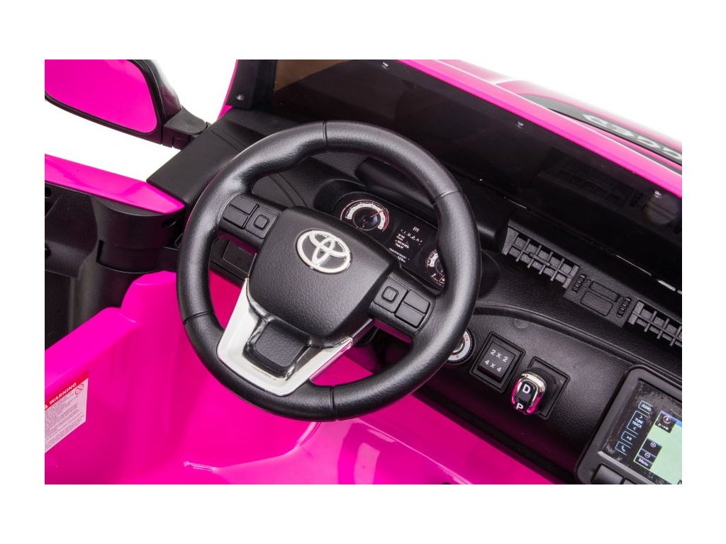 Детска акумулаторна кола Toyota Hilux 4x4 розова пристига с меки пяни Eva колела, които заедно с мощните електрически двигатели 4x45W се справят с различни терени и наклони.