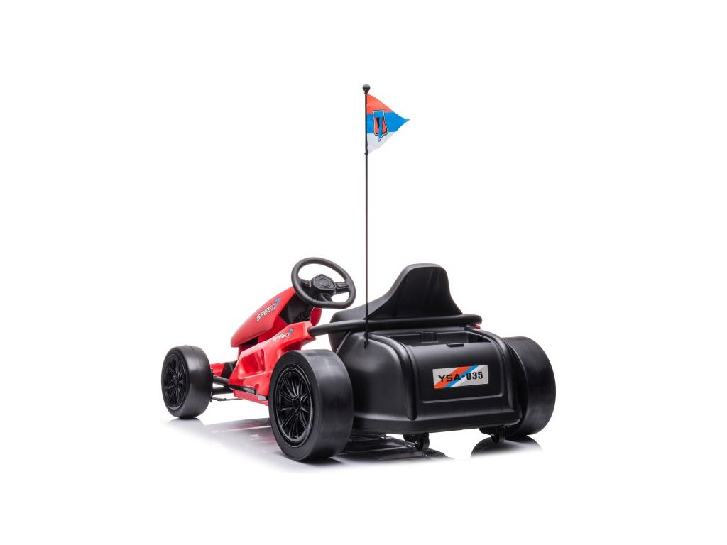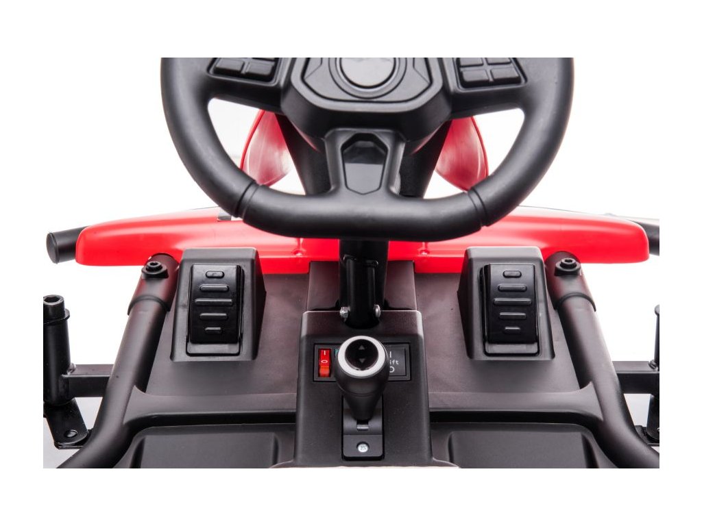 Детска електрическа мотокара с батерия с капацитет 24V 7Ah и два мотора с мощност 200W е незаменима в детската гаражна колекция. Мотокарата е оборудвана със спортно оформено седалка. Мотокарата има товароносимост 60 кг, което я прави подходяща за по-големи деца. Максималната скорост е 9 - 12 км/ч. Предните колела са изработени от EVA пяна, а задните - от пластмаса, което позволява използването на функцията за дрифт.