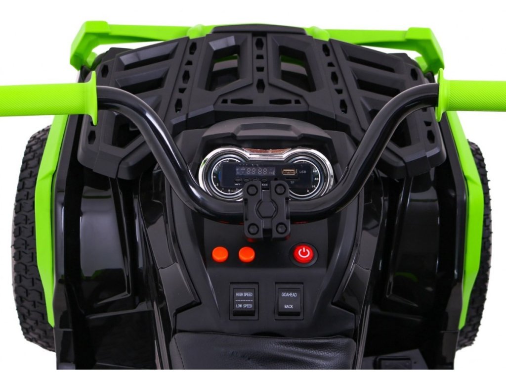 Пътуването ще стане още по-приятно с музика, която можете да пускате чрез FM радиото или през входовете за MP3, SD, AUX и USB. При стартиране ще чуете звук на мотор. Атв-то потегля и спира плавно, без рязко "подскачане". За безопасността на детето се грижи функцията за автоматично спиране, която се активира при отпускане на педала на газта.