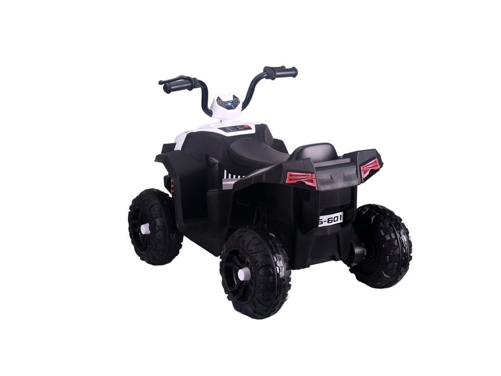 Миниатюрната версия на АТВ-то има десетки предимства – ще ви представим някои от тях. Конструкцията на превозното средство е замислена до най-малкия детайл, което се доказва от ергономичната форма на волана в комбинация с удобно захващане, комфортно седалка, покрита с мека кожа, както и широки стъпала, гарантиращи комфорт при всякакви условия. С шофирането на бялото АТВ S601 всяко дете може да се почувства като шофьор на истинско офроуд превозно средство. Тези усещания се усилват от имитациите на различни индикатори, разположени на малкия кокпит, както и от превключватели и бутони, които активират звуци. Гарантирани емоции!