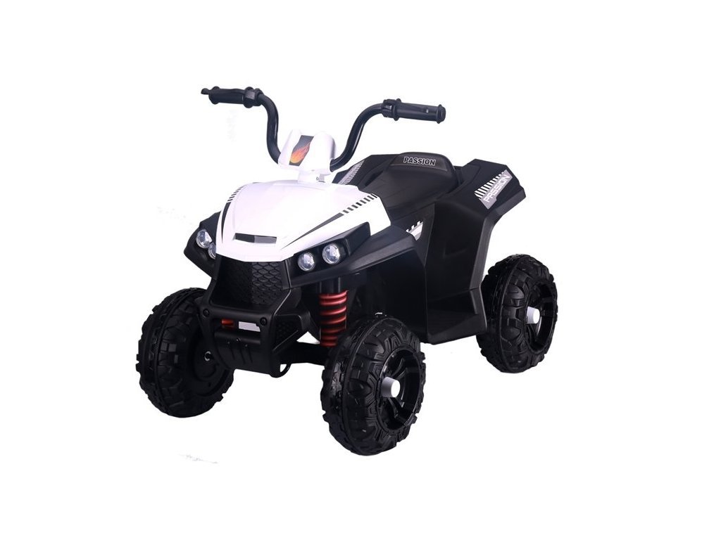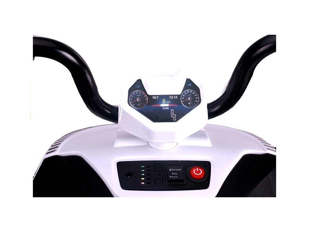 Бяло-черният еквивалент на истинско АТВ е оборудван с LED предни фарове, които не само повишават нивото на безопасност при забавления след здрач, но и улесняват видимостта и избягването на препятствия по пътя на малкия шофьор.