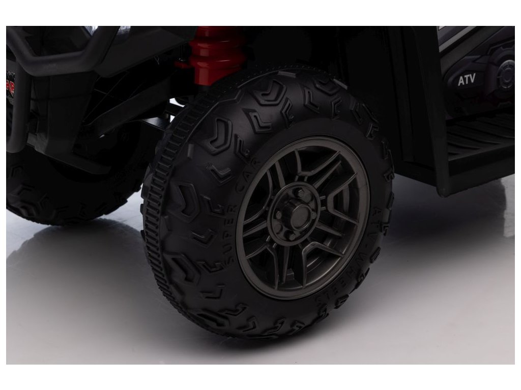 В комплекта е включен музикален панел с входове за USB и MP3. АТВ-то разполага с предни LED фарове, позволява движение във всички посоки и има товароносимост до 25 кг.