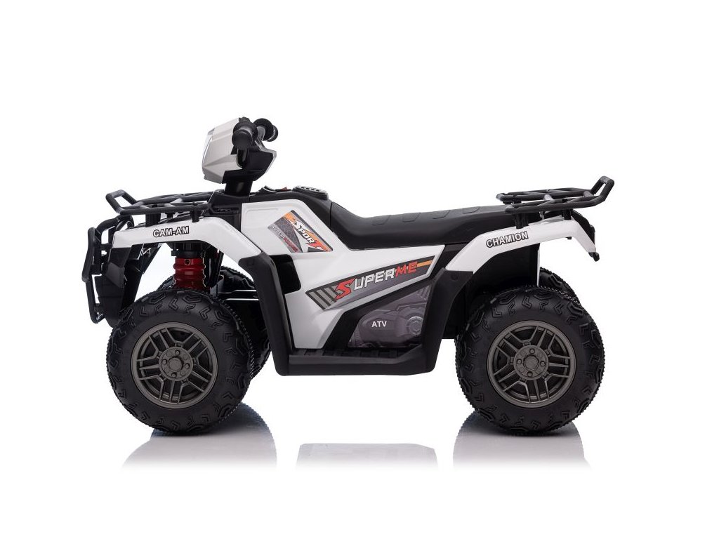 Детска акумулаторно атв Superme бял е оборудвано с два мотора с обща мощност 90W. АТВ-то лесно се справя с различни видове терени, нехабилитиран терен и планински наклони.