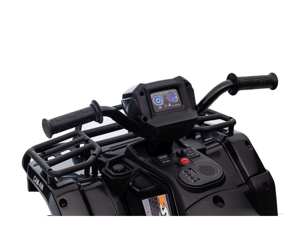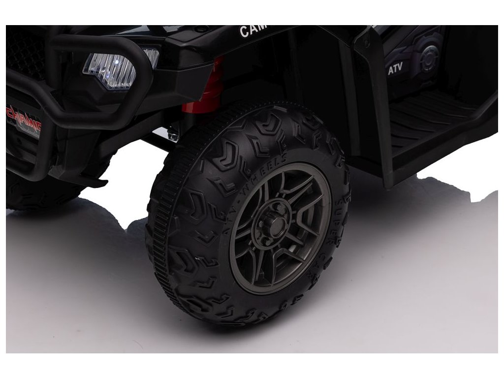 Сред оборудването е включен музикален панел с входове за USB и MP3. Атв-то разполага с предни LED светлини, позволява движение във всички посоки и товароносимост до 25 кг.