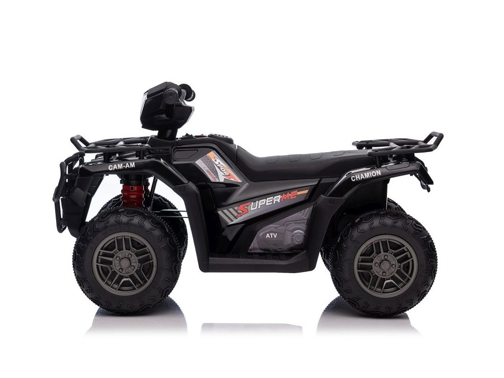 Детска акумулаторно атв Superme черен е оборудвано с два мотора с обща мощност от 90W. ATV-то лесно се справя с различни типове терени, неравни повърхности и изкачвания.