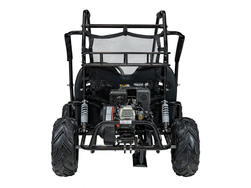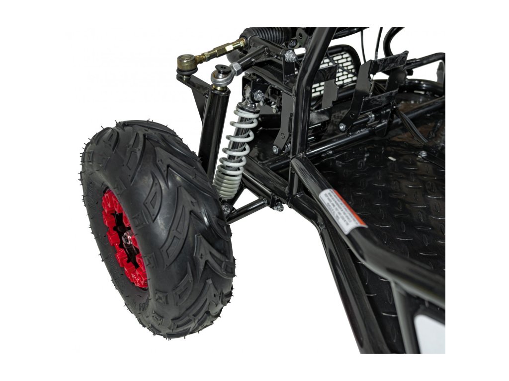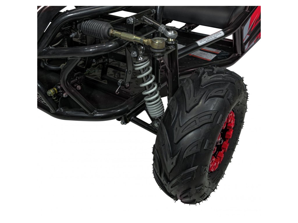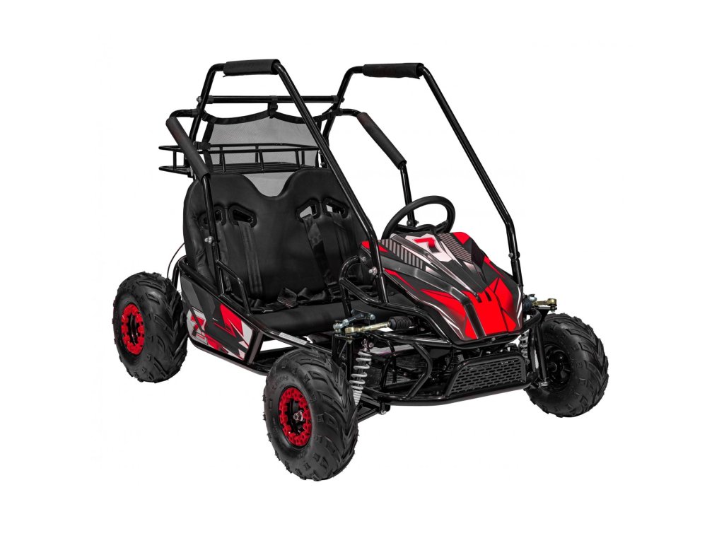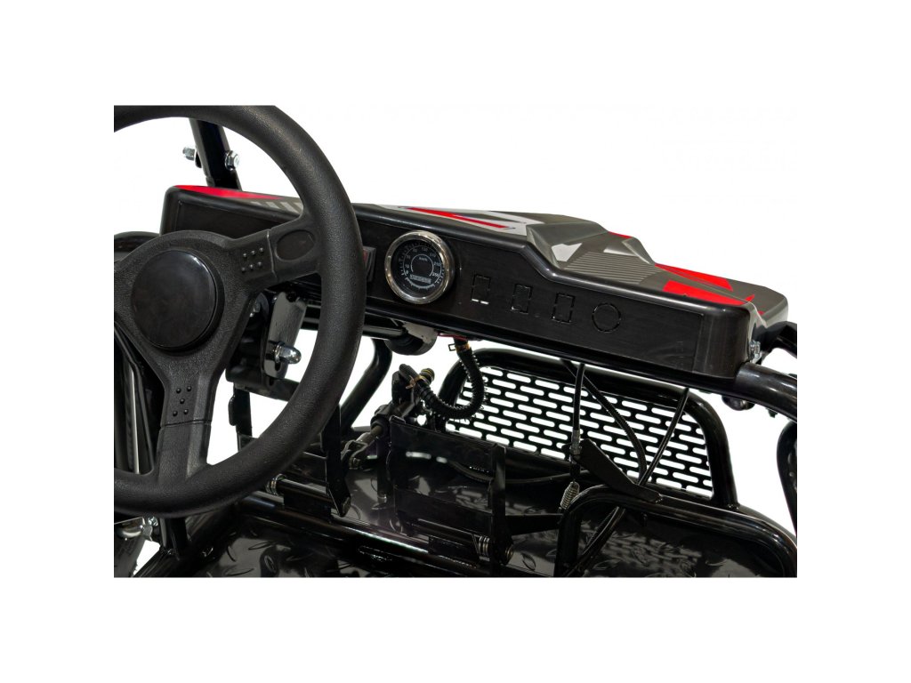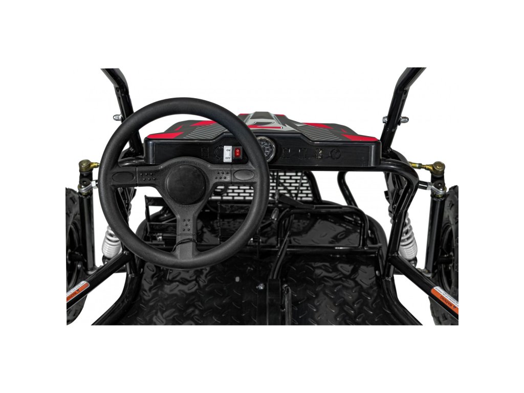 Детска бензинова бъги кола LUCKY SEVEN червена е оборудвана с едноцилиндров четиритактов двигател и широки надуваеми гуми. Превозното средство разполага с резервоар с вместимост 3,6 литра.