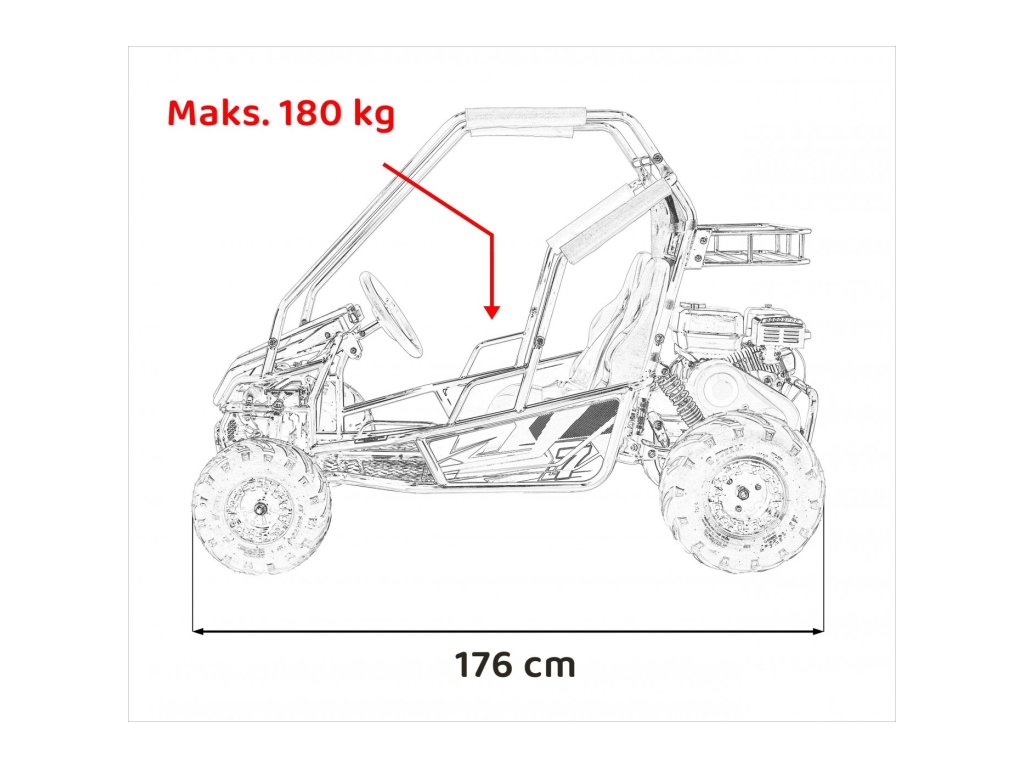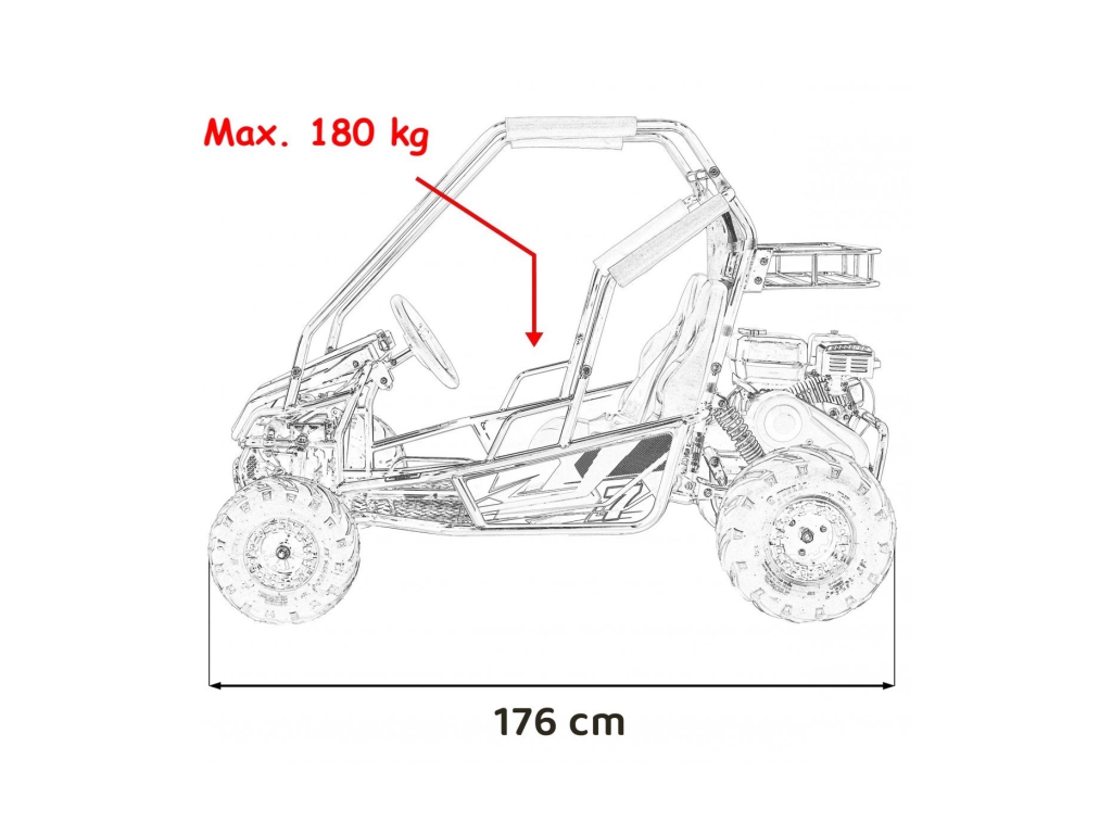 - Размери на бъгито: 176 x 117 x 122 см (дължина x ширина x височина)