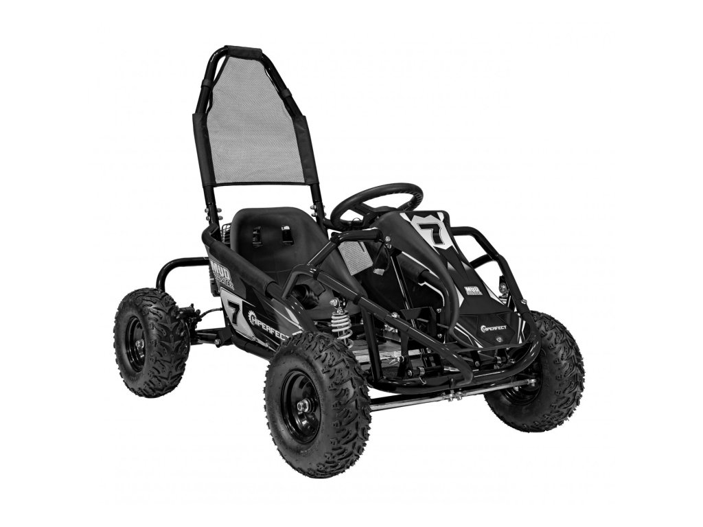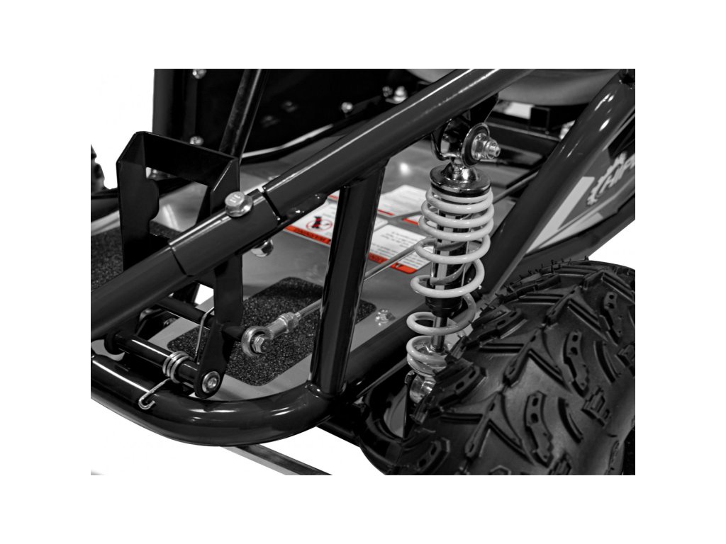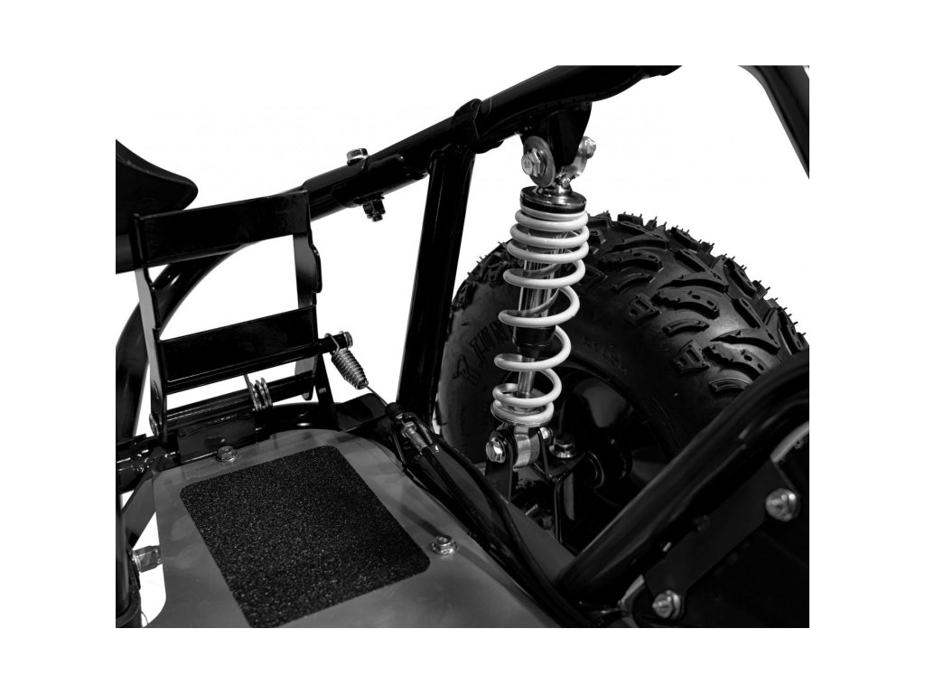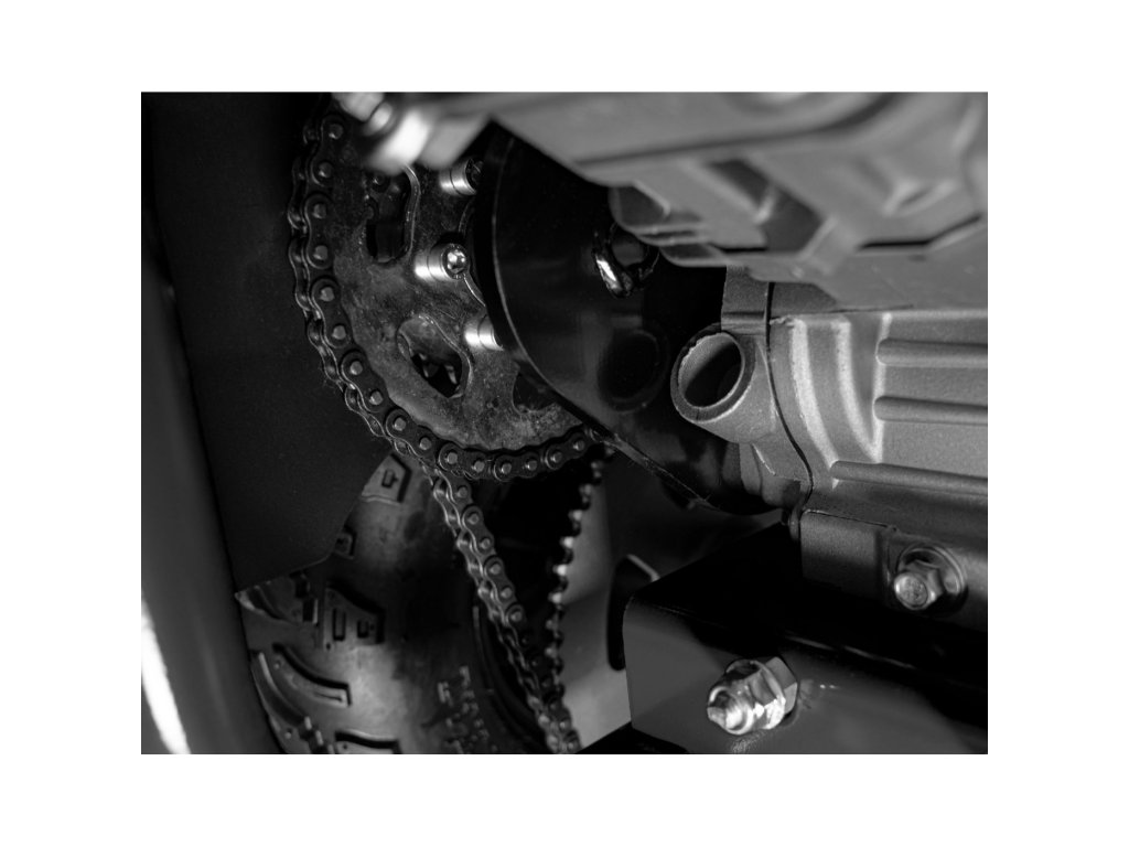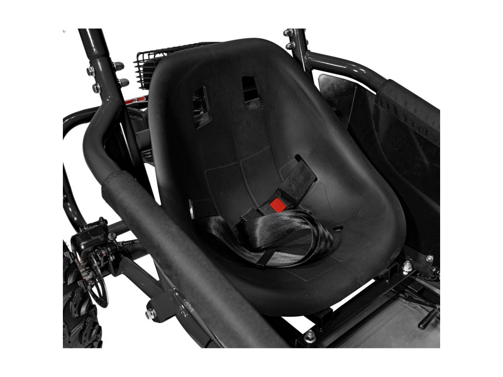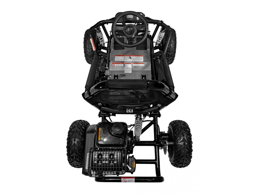 Детска бензинова мотокара MUD MONSTER черна е оборудвана с едноцилиндров четиритактов двигател и широки пневматични гуми. Превозното средство разполага с резервоар с вместимост 2,3 литра.