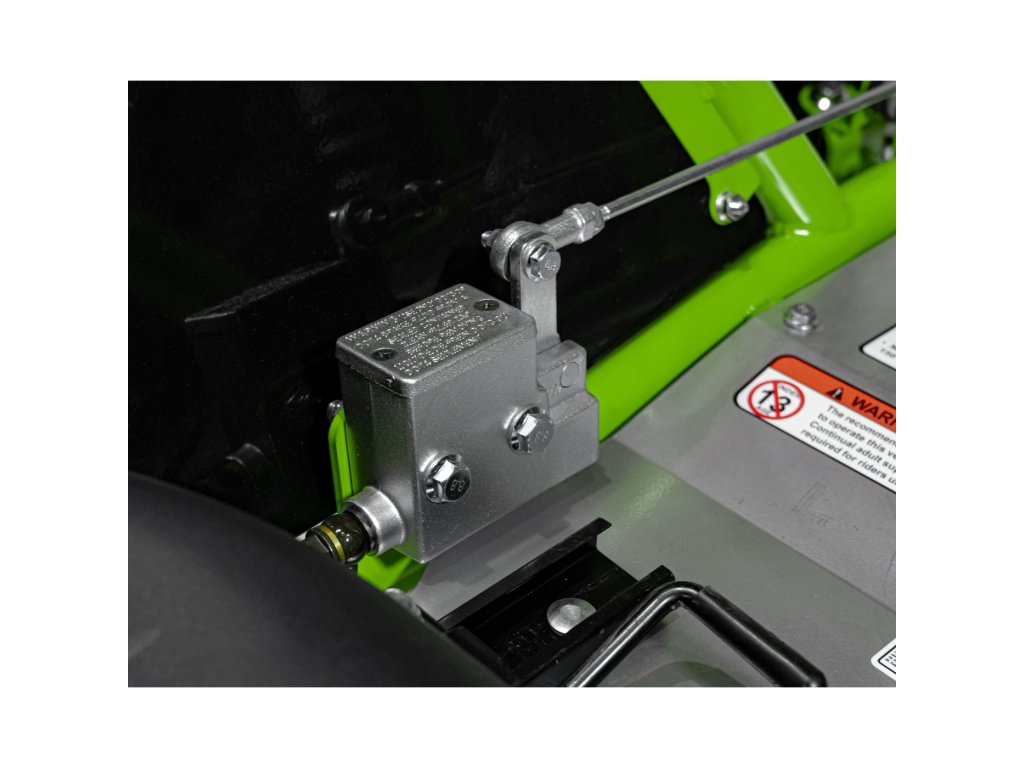 Сред характеристиките са регулируемо водоустойчиво седалка с предпазни колани и дискови спирачки. Мотокарът позволява движение напред и товароносимост до 68 кг.