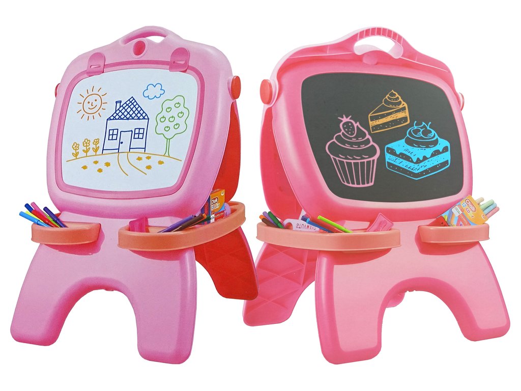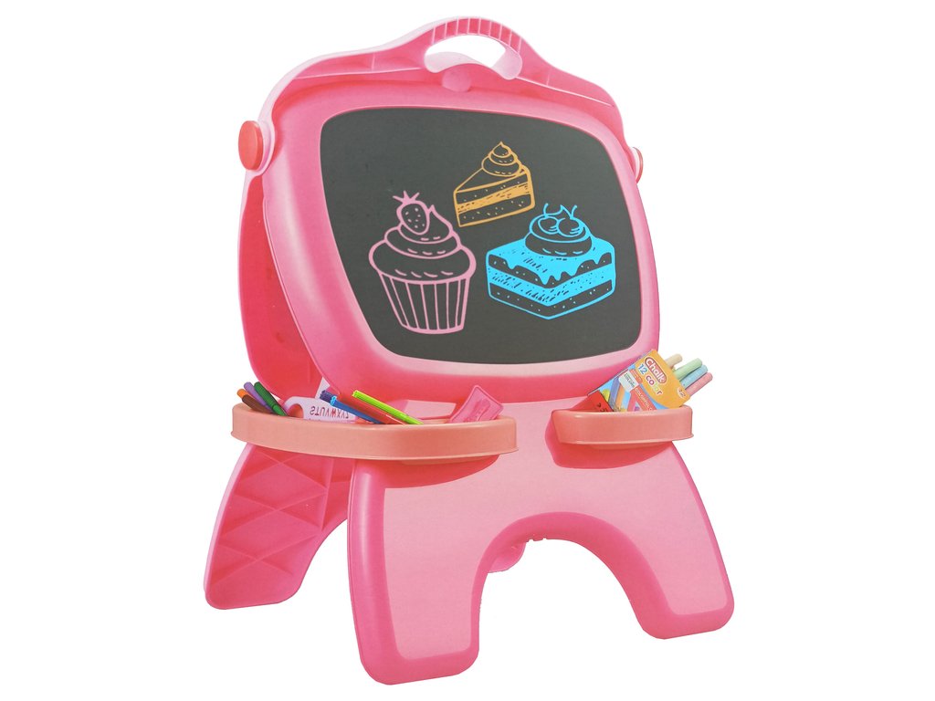 Детска двустранна магнитна дъска розова ще зарадва не само малките творци, но може да служи и като образователна играчка. Рисуването с тебешир и маркери е перфектно за дете, което обича да твори. Рисуването на дъската развива въображението, точността и координацията между око и ръка.