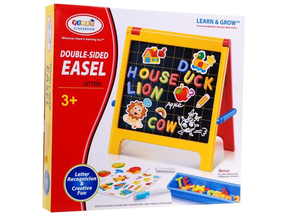Детска двустранна магнитна дъска за рисуване с тебешир и маркери, която е идеална за всяка детска стая. Рисуването върху дъската развива въображението и прецизността на вашето дете.