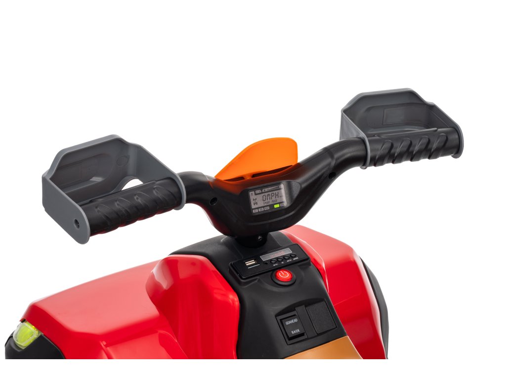 Оборудването включва музикален панел с входове USB и MP3. АТВ-то има предни и задни LED светлини, позволява движение във всички посоки и товароносимостта му е до 30 кг.