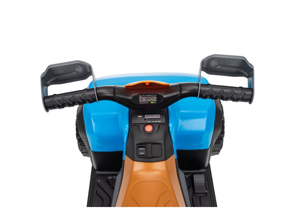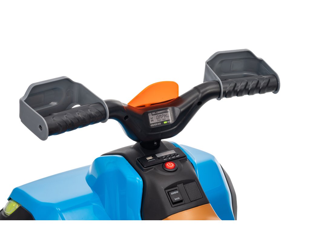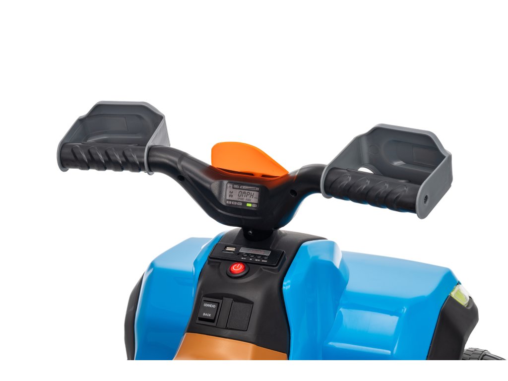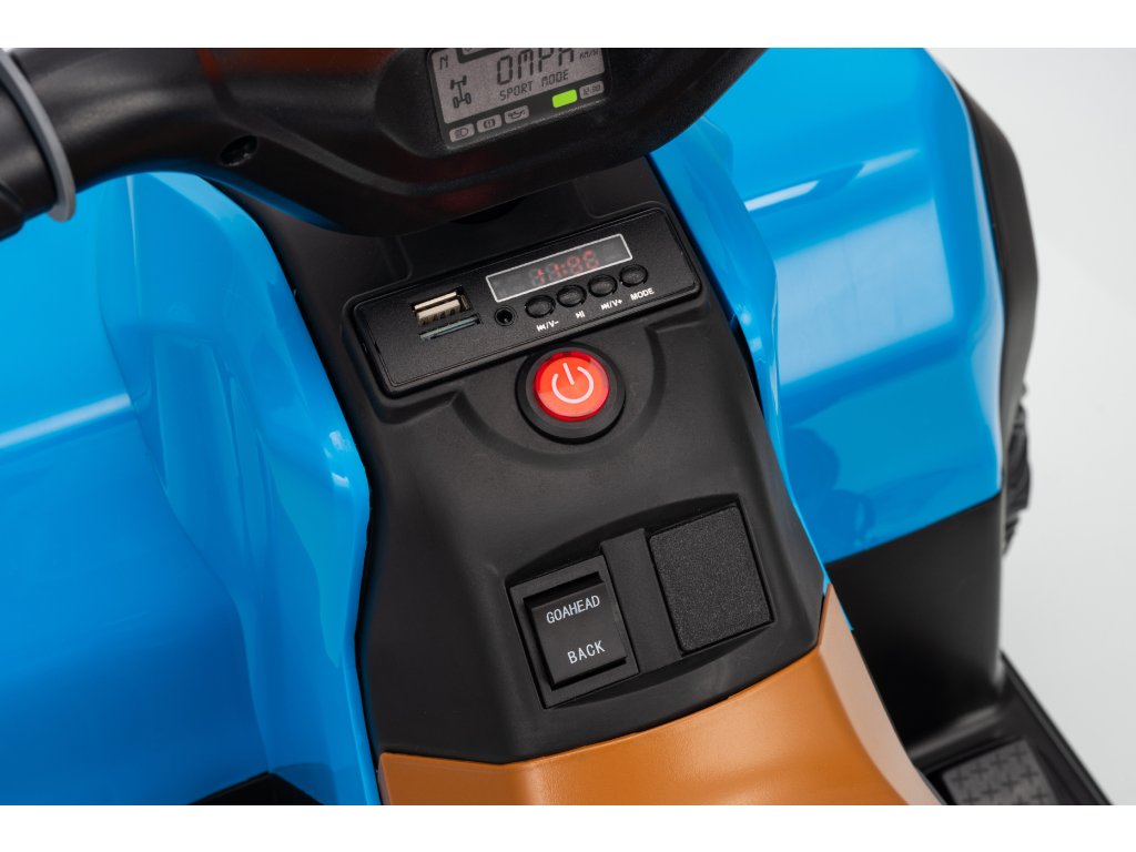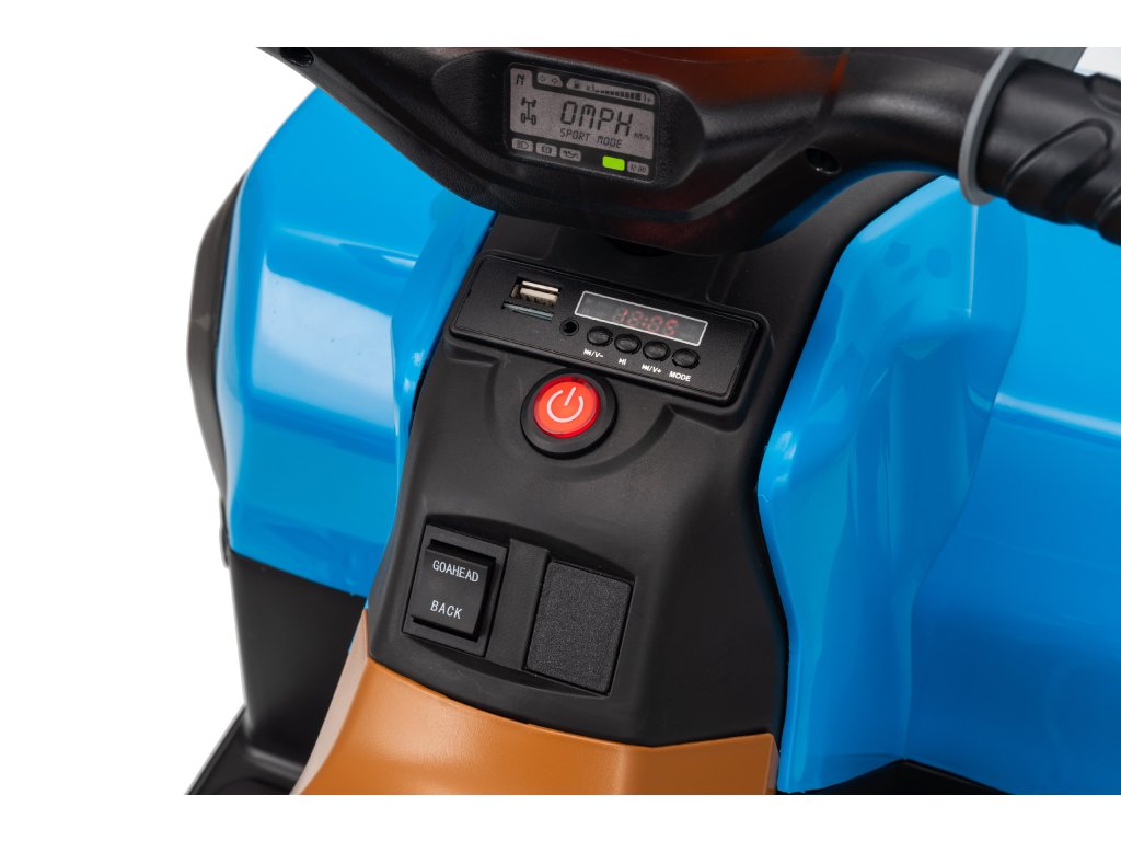 Оборудването включва музикален панел с входове USB и MP3. АТВ-то има предни и задни LED светлини, позволява движение във всички посоки и товароносимостта му е до 30 кг.