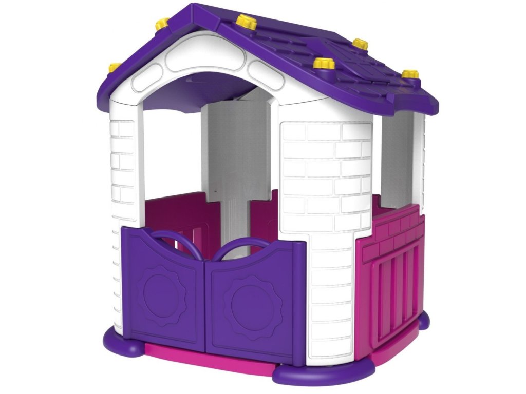Приказна детска градинска къща със пързалка лилава с просторен интериор и пързалка. Къщата разполага с отваряща се врата и здрава конструкция. Пързалката може да бъде монтирана от всяка страна на къщата и преддверието. Играчката е изработена от висококачествени материали, като всички стени и елементи са направени от двойна пластмасова пластина. Градинската къща е устойчива на атмосферни влияния и UV лъчи. Подходяща за деца на възраст от 1 година. Продуктът има европейски сертификат за безопасност CE. Произведено в Корея.