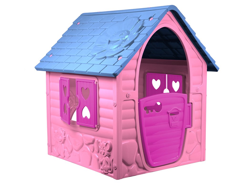 Детска градинска къщичка PlayHouse розова, изработена от висококачествена пластмаса, подходяща за всички деца над 2 години. От двете страни на къщичката има вратички и прозорци.
