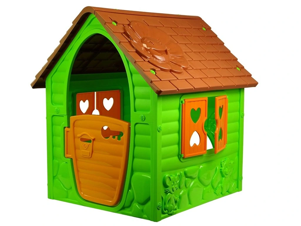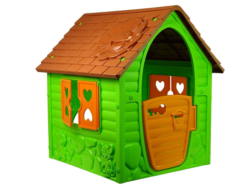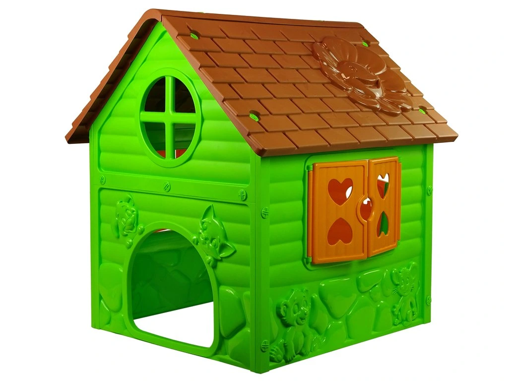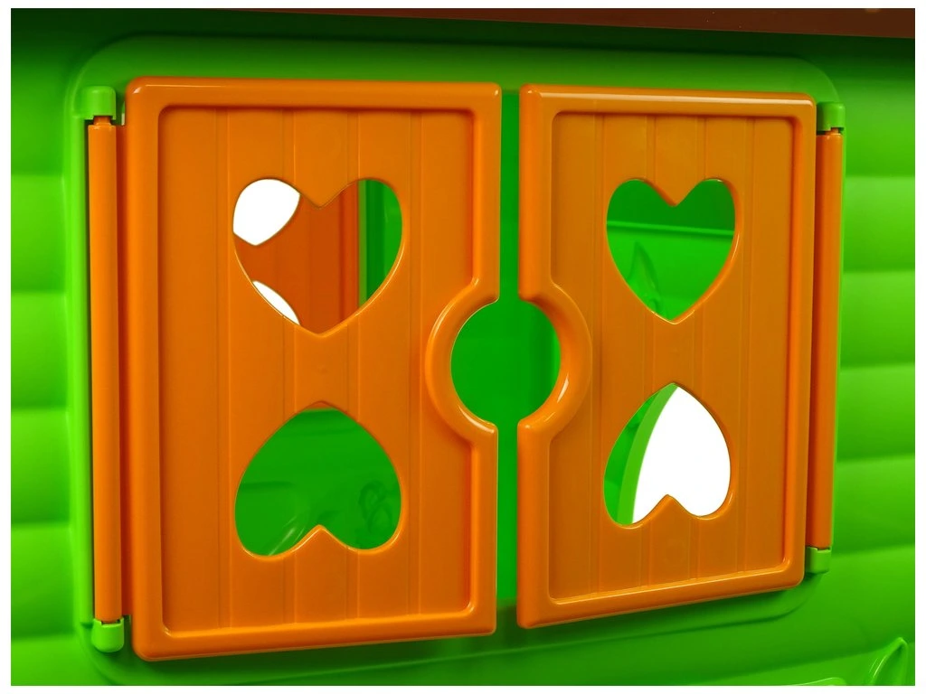 Детска градинска къщичка PlayHouse зелена, изработена от висококачествена пластмаса, подходяща за всички деца от 2 години. От двете страни на къщичката има вратички и прозорци.