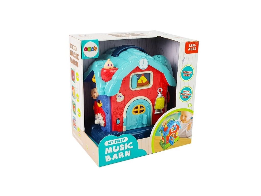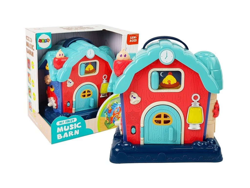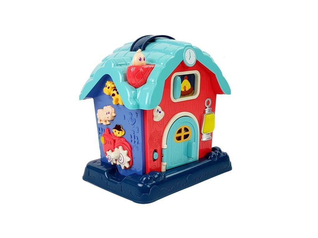 Играчката е много разнообразна. Всички звуци и имена са на английски език, което помага на вашето дете да научи основни думи на чужд език. Всички изпъкнали елементи тренират улавяне и прецизност при детето. Обора има вратички, които могат да се отварят, звънец за натискане, както и овца и крава. В комина има малко детенце, което след натискане разказва история. Играта е допълнена със светлинни ефекти в предната част на постройката.