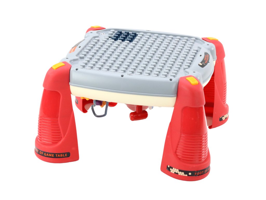 Образователната масичка стои върху четири сини крачета, които могат да се свалят, позволявайки игра директно на пода. От другата страна на масата има раздели за подреждане на кубчета и сензорна игра.