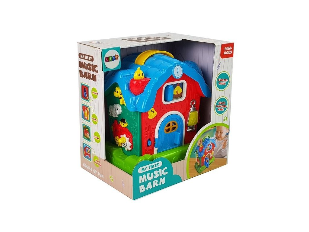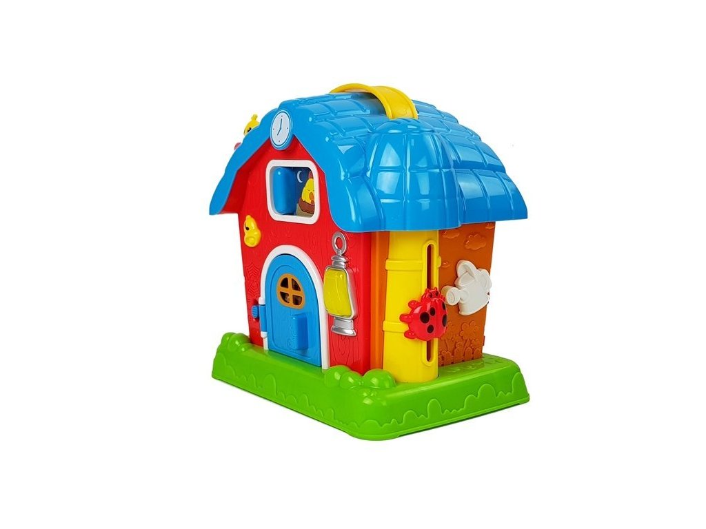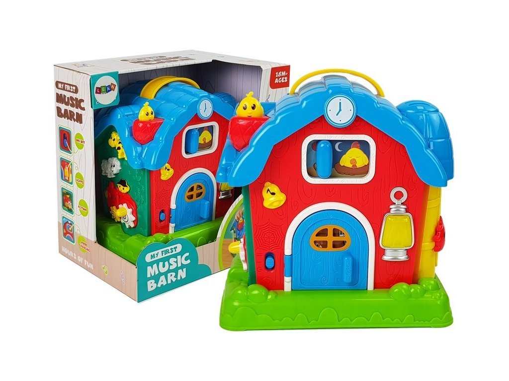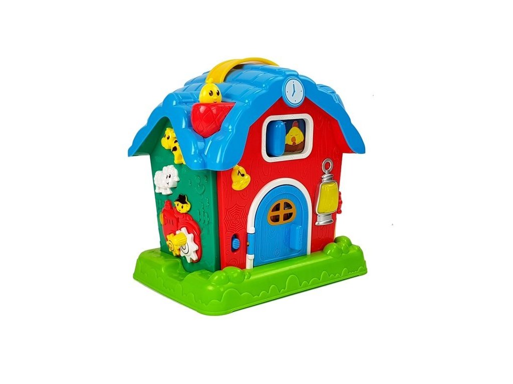 Играчката е изключително разнообразна. Всички звуци и имена са на английски език, което дава възможност на Вашето дете да научи основни думи на чужд език. Всички издаващи се елементи тренират хващането и прецизността на детето. На плевнята може да се отварят вратите, да се натисне звънецът, овцата или крава. В комина има малко дете, което при натискане разказва история. Играчката е придружена със светлинни ефекти в предната част на сградата.
