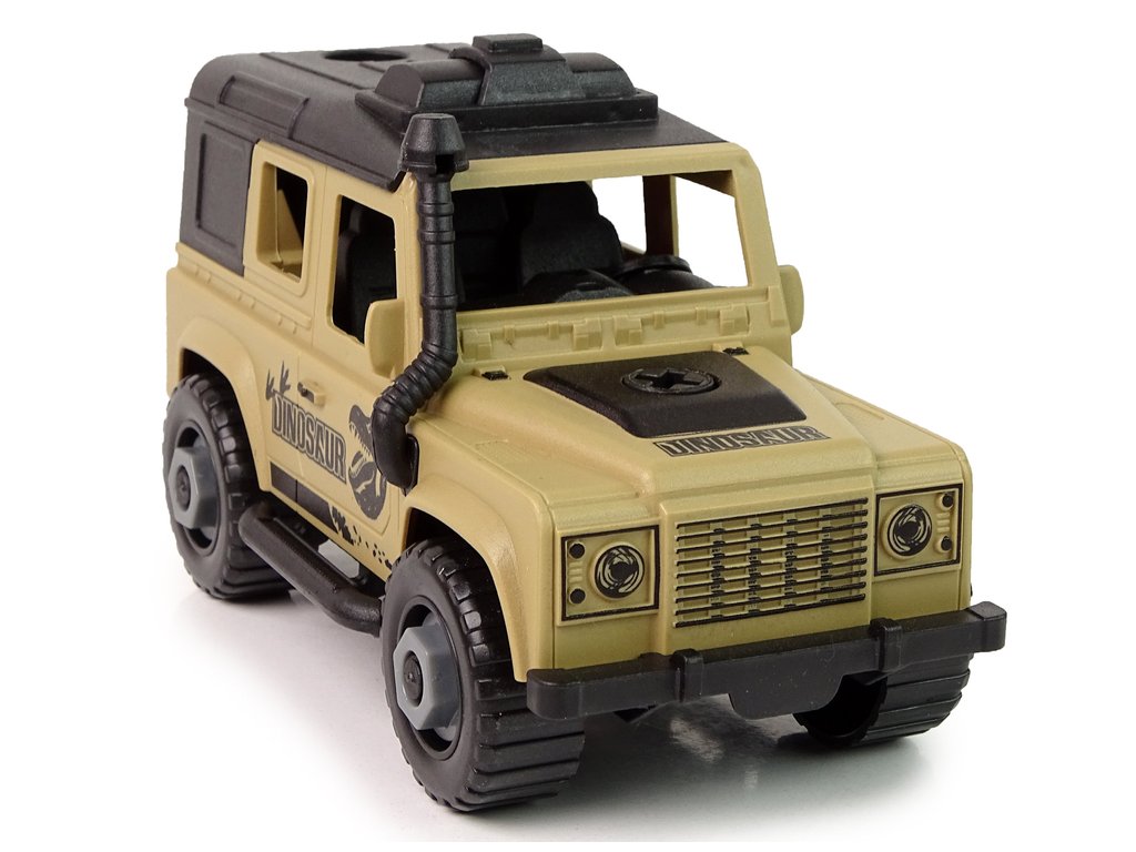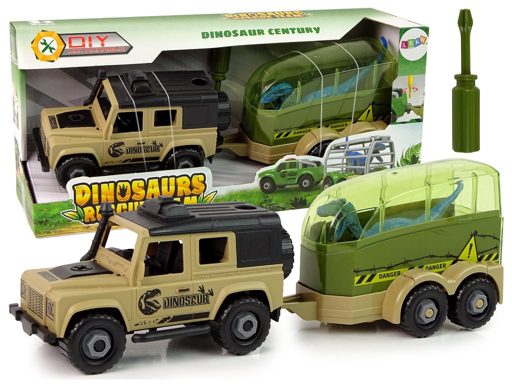 - Внедорожният автомобил лесно може да транспортира голям динозавър и да го спаси от беда. Колата е оборудвана с винтове, които закрепват различните части на превозното средство. В комплекта е включена отвертка, с която детето може да завива и развива винтовете. Затягането на винтовете развива фината моторика на ръцете, което подготвя детето за бъдещото писане и подпомага ръчната координация.