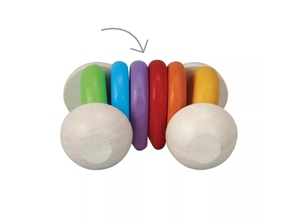 Цветната количка има гъвкаво тяло, което реагира на докосването на детето и подпомага развитието на визуалните и двигателните умения.