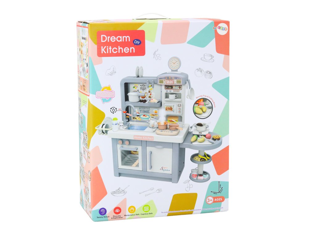 Оборудвана с множество необходими аксесоари като тенджери, съдове, ястия, зеленчуци и плодове, готови за рязане, нашата кухня предоставя реалистично изживяване на готвене. Всеки елемент е изработен с внимание към детайла, за да пресъздаде максимално реалността и същевременно да гарантира безопасност при игра. Така децата могат да се учат как правилно да държат нож, да бъркат съставките в тенджерите или да сервират ястията върху чиниите.