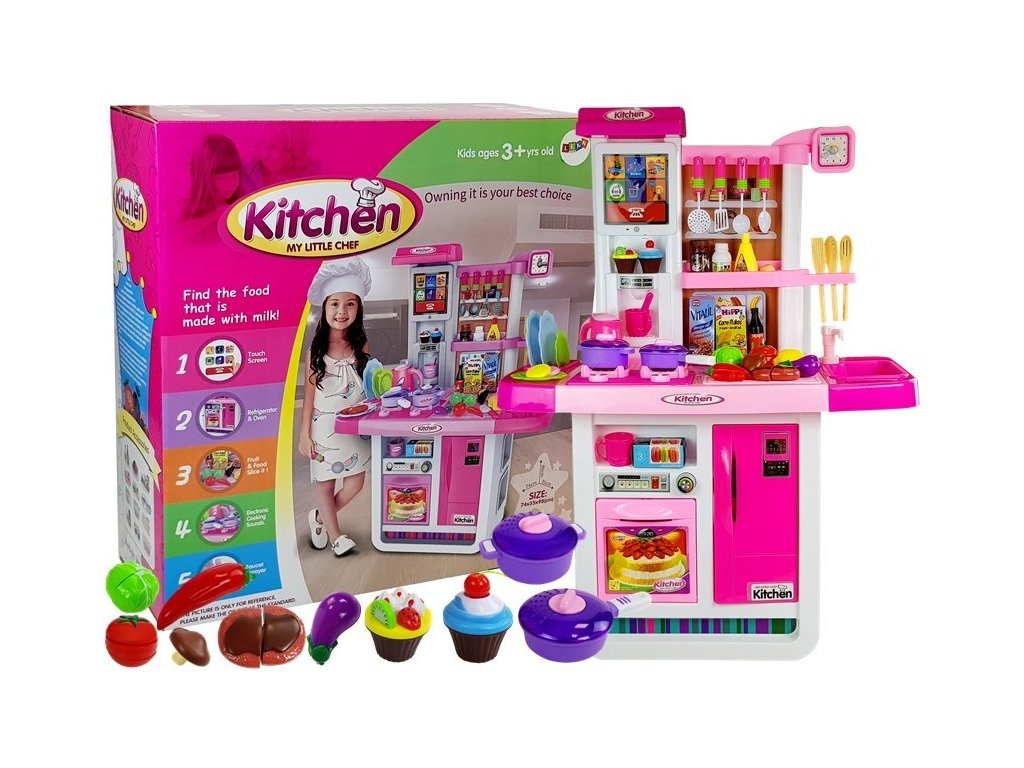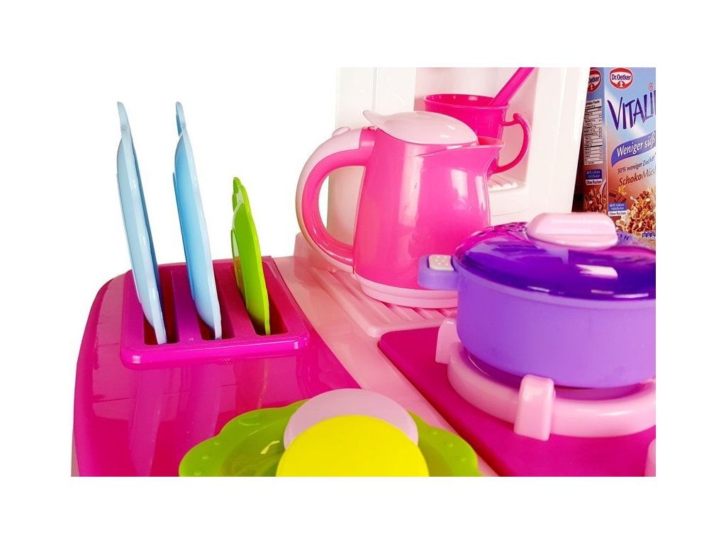 Ако вашето дете проявява интерес към готвенето и винаги наблюдава как мама готви в кухнята, тогава тази детска кухня с течаща вода и храни розова е перфектното предложение за малкия готвач. Детето ще развива въображението и мисленето си, докато играе с приятели или съседи.
