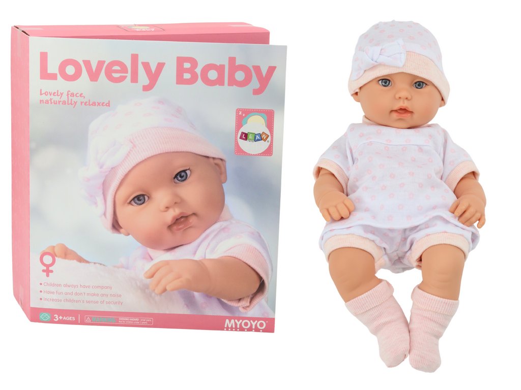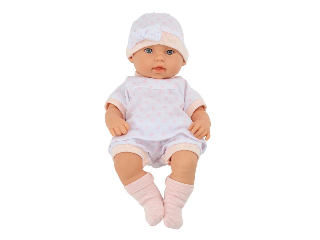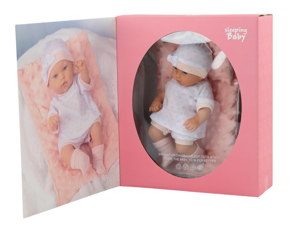 Одеялцето и възглавничката са изработени от мек материал, осигуряващ комфорт както на куклата, така и на детето, което се грижи за нея. Целият комплект е създаден с акцент върху реалистичната и занимателна игра, като куклата разполага с подвижни ръце и крака, което дава възможност за пресъздаване на различни сцени и ситуации.