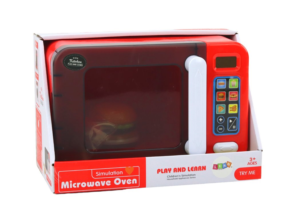 Нашата микровълнова фурна не е просто играчка – тя е интерактивно преживяване, което вдъхва живот на домашната игра. След натискане на бутон фурната стартира магическа симулация на готвене. Осветеното вътрешно пространство изглежда като истинска микровълнова фурна, а въртящата платформа добавя реализъм. Детето може дори да отвори вратата, за да постави храна за загряване и след приключване на времето да извади готовото ястие. Комплектът включва и играчки за храна – хамбургер, пържени картофки и хот-дог, които правят играта още по-забавна.