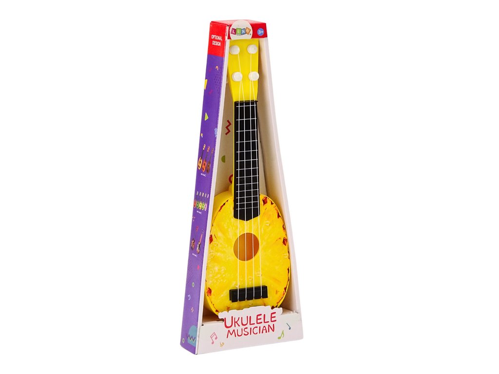 Детска мини укулеле китара 4 струни ананасов мотив жълта 15"