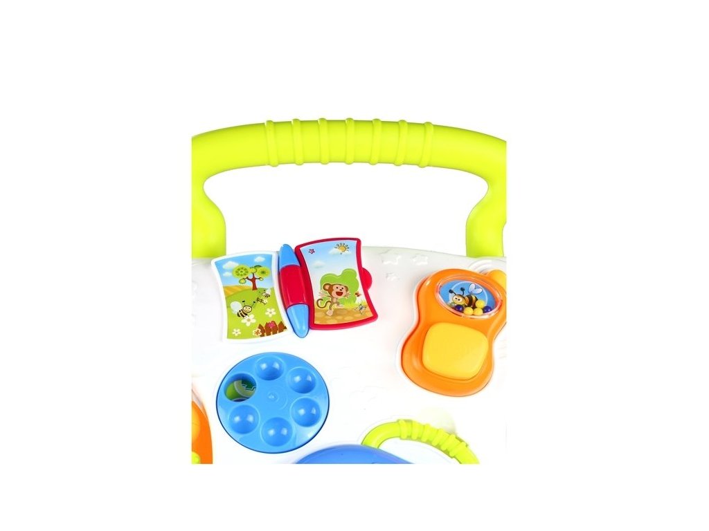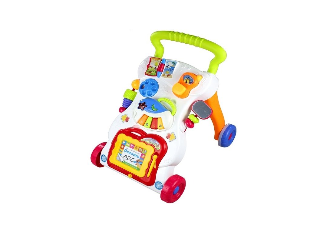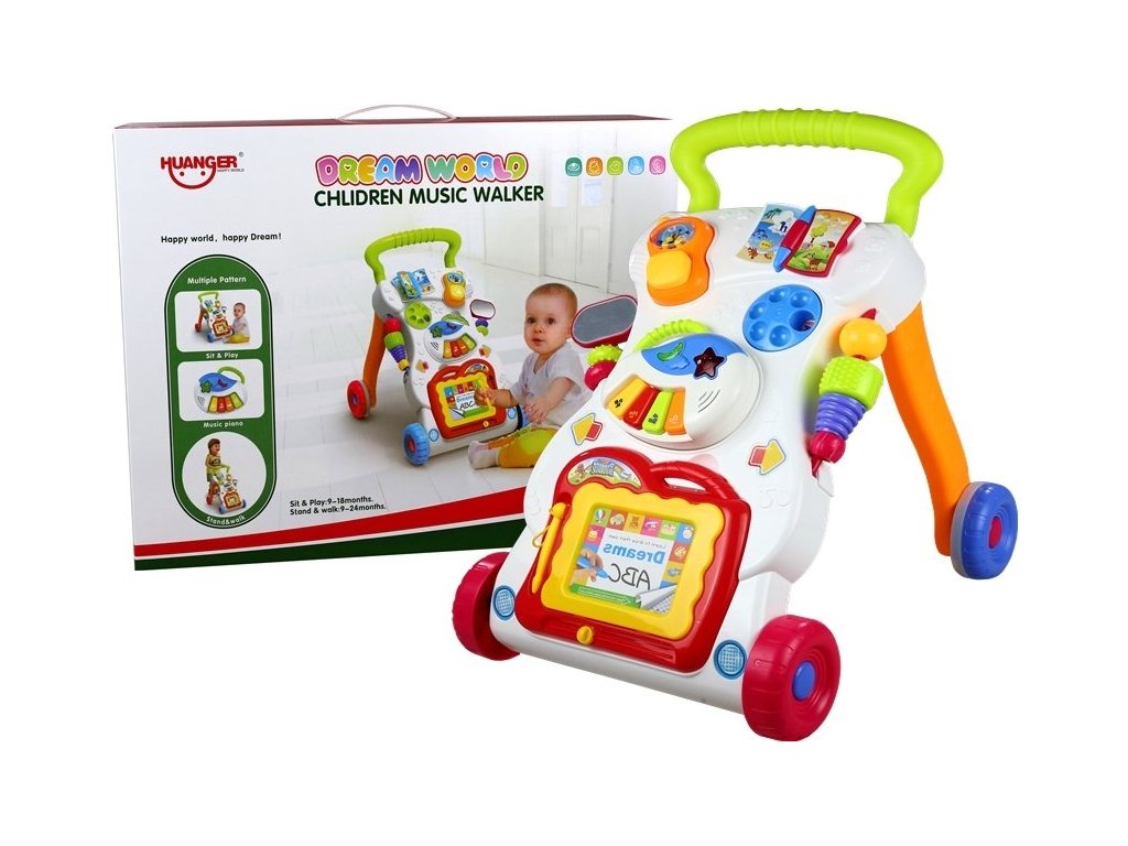 Детска музикална проходилка 3в1 е играчка с образователна функция, придвижваща проходилка и класическа играчка в едно. Това е интерактивна играчка, която помага на детето да научи първите букви, числа, думи и форми. Цветният плъзгач е оборудван с звукови ефекти.